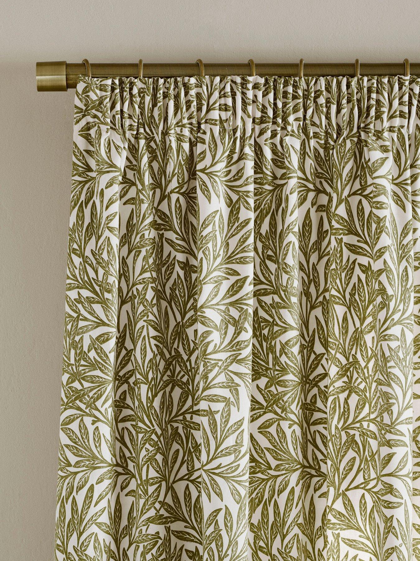 Original Willow Lined Header Tape Curtain Olive GreenIntwined willow leaves in a flowing upwards movement create a harmonious design that decorates this blackout lined, pencil pleat curtain. Coloured in a rich blue and warm cream colour palette, this curtain is perfect for bringing a sense of nature's calm to your home. Willow was designed by William Morris and originally produced as a hand block printed wallpaper in 1874.