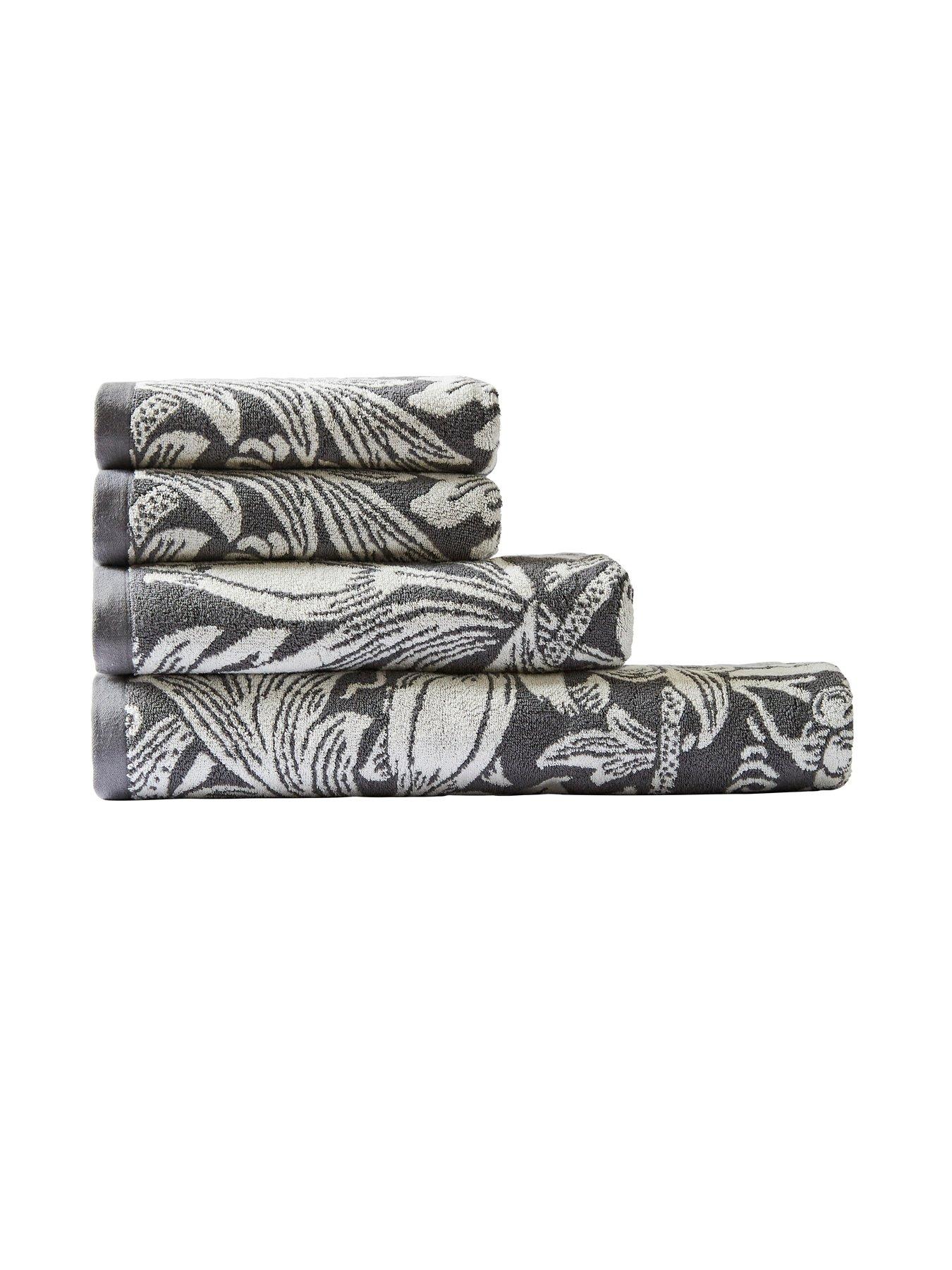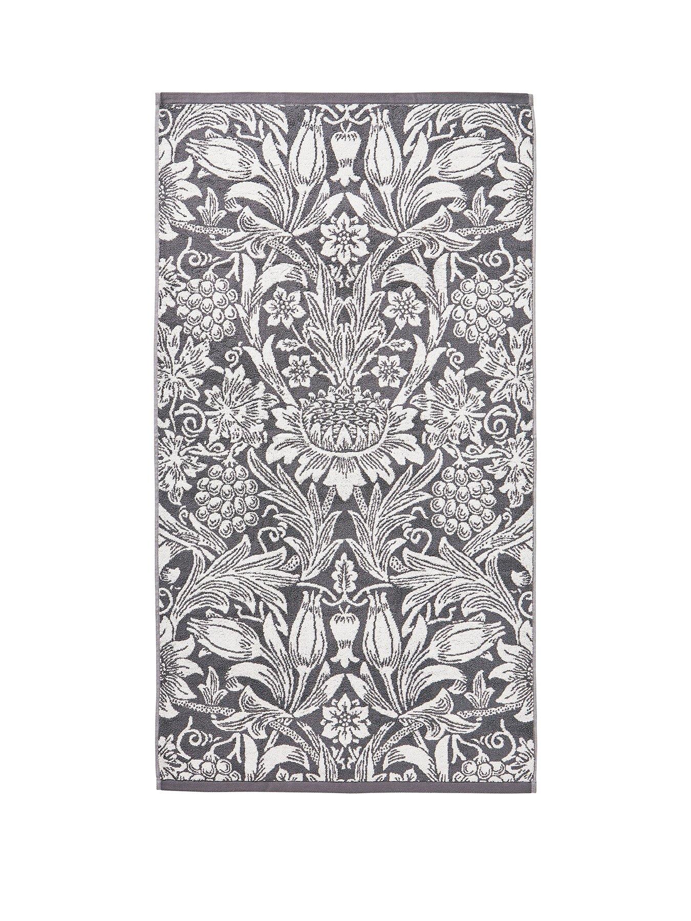 William Morris at Home Sunflower 100% Cotton 70x125cm Bath TowelOriginally a wallpaper design, the Sunflower pattern, depicting sunflowers, tulips and grapevines was registered by William Morris in 1879 and has been translated beautifully onto these soft, 100% cotton woven towels in a cool grey and fresh cream palette. - Luxuriously soft, 100% cotton towels.- A contemporary, cool grey and fresh cream colour palette. - William Morris' timeless Sunflower design, depicting sunflowers, tulips and grapevines is intricately woven.