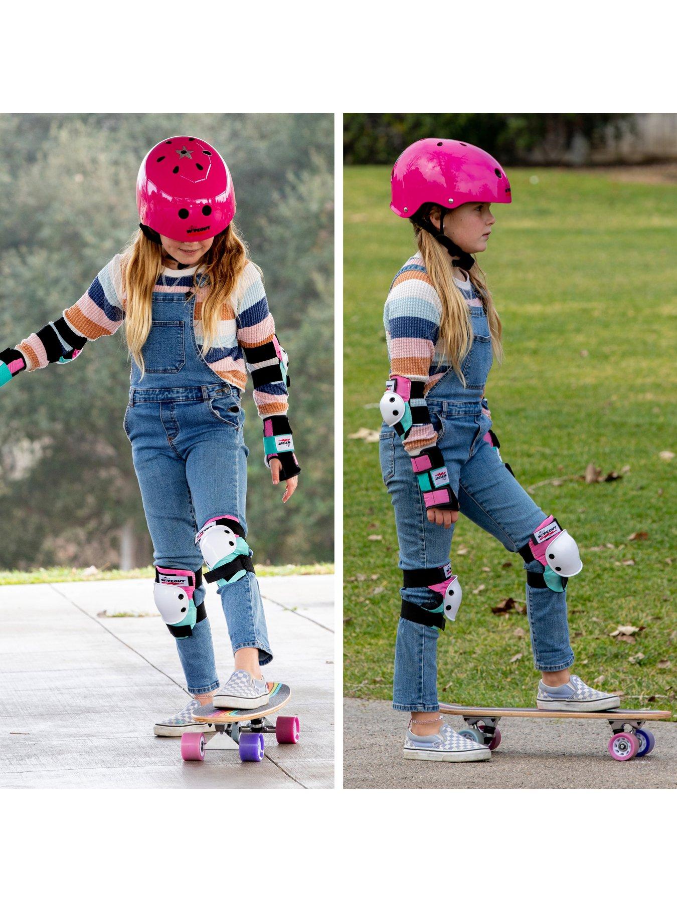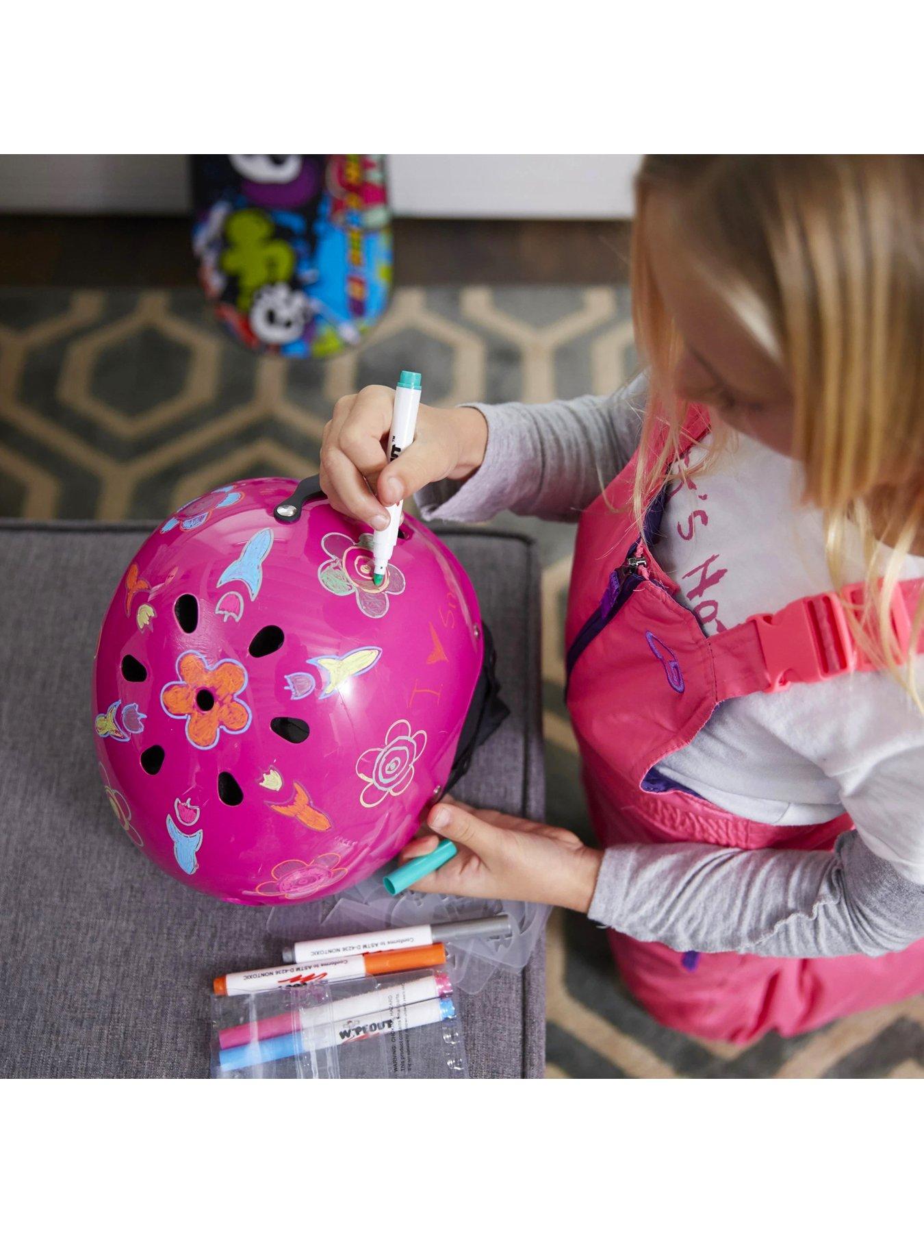 Kids can get creative to customise their protective Wipeout Helmet.Protective Fun!Use the fluorescent markers to create your own designs on the Wipeout Dry Erase Kids Helmet for Bike Skate & Scooter. This sturdy and stylish helmet comes with 5 dry erase, non-toxic markers in assorted neon colours and a stencil kit with 8 awesome shapes. Dry Erase Pens Kids love to draw, so let them express themselves and be creative! When it's time for a new design, just wipe off the old one with a dry cloth! Draw on... wipe off... draw again! Multisport Protection Suitable from age 8+ (52 - 56cm / 20.5 - 22inch), this Wipeout helmet is designed for use across a multitude of roller sports, including Bikes, Skateboards, Scooters, Roller skates, Inline skates (roller blades). WARNING: Reduce the risk of serious injury by always wearing a full set of protective gear: helmet, knee and elbow pads, wrist guards when riding a bike, skateboard, scooter or rollerskates. |