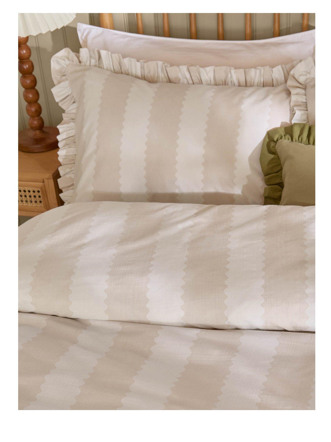 Wylder Nature Birdie Stripe Duvet Set NaturalBring a touch of elegance to your bedroom with the Birdie Stripe Duvet Cover Set. Crafted from cotton-rich fabric with a 180 thread count, this duvet cover set offers a blend of comfort and style. The delicate ruffle trim nods to British heritage, while adding a subtle hint of cottage core charm. Designed for those who appreciate classic prints and patterns, this timeless bedding will become the centrepiece of your room, creating a serene retreat inspired by the natural world.