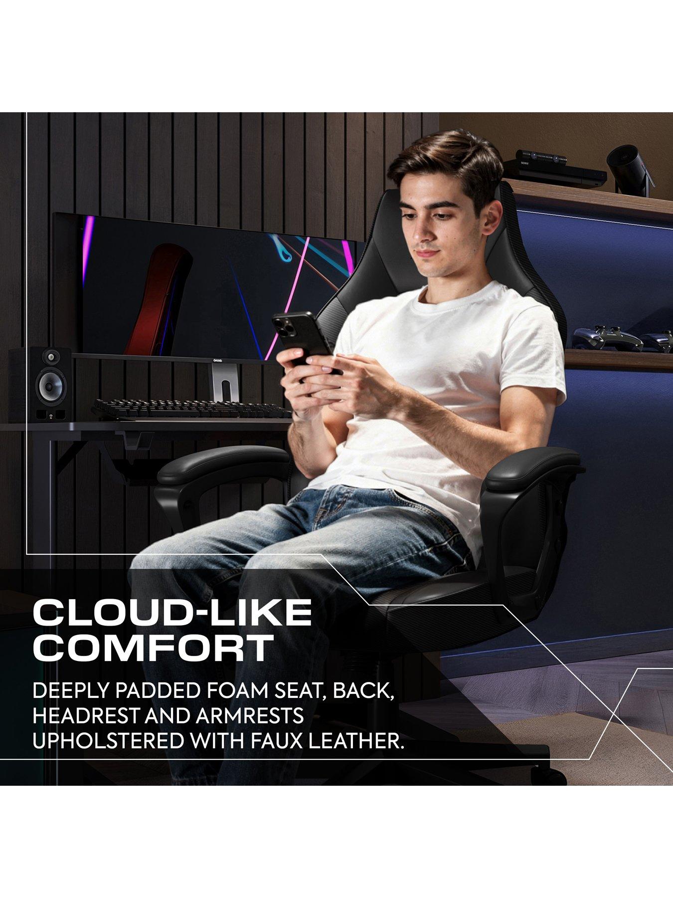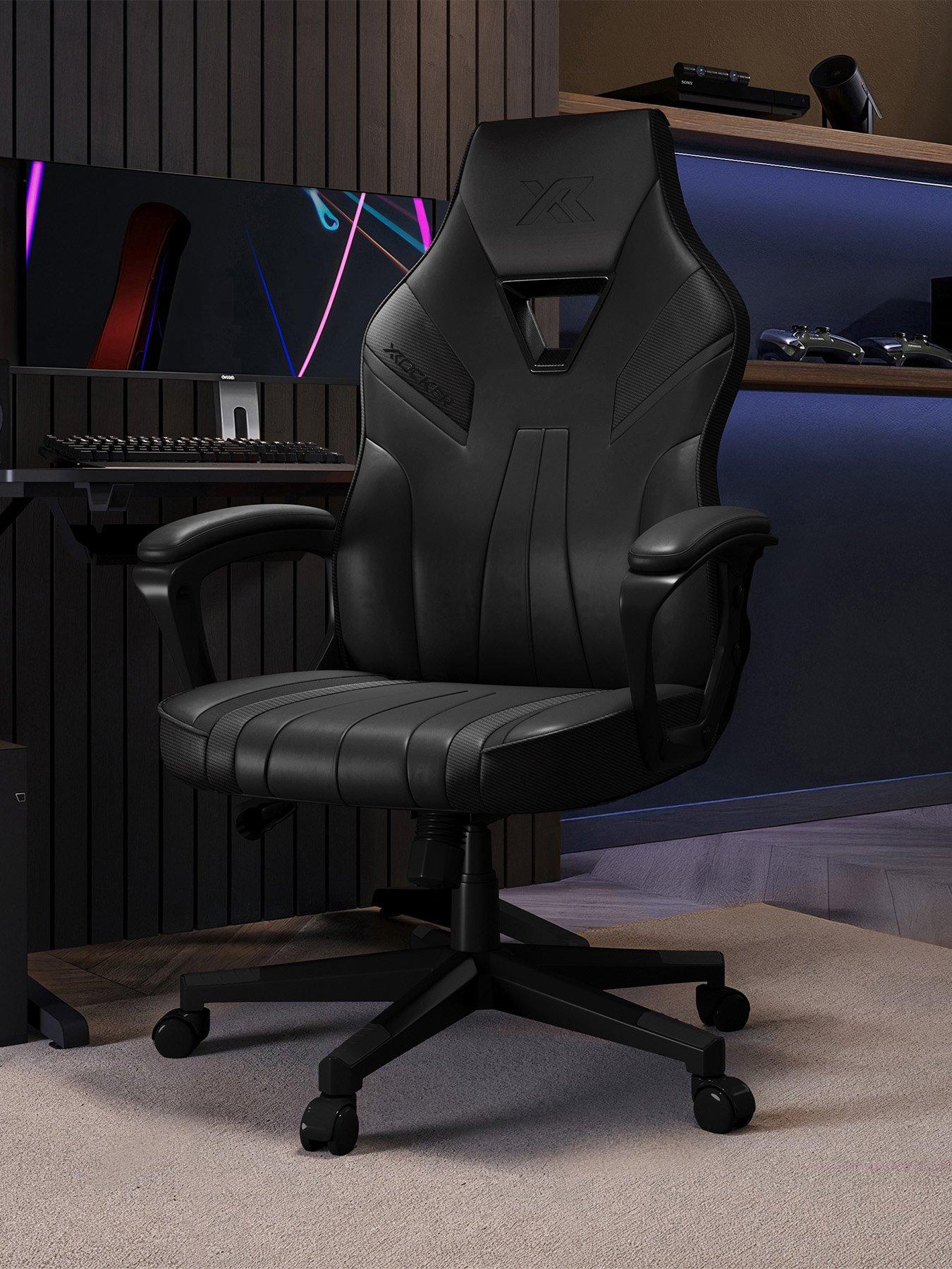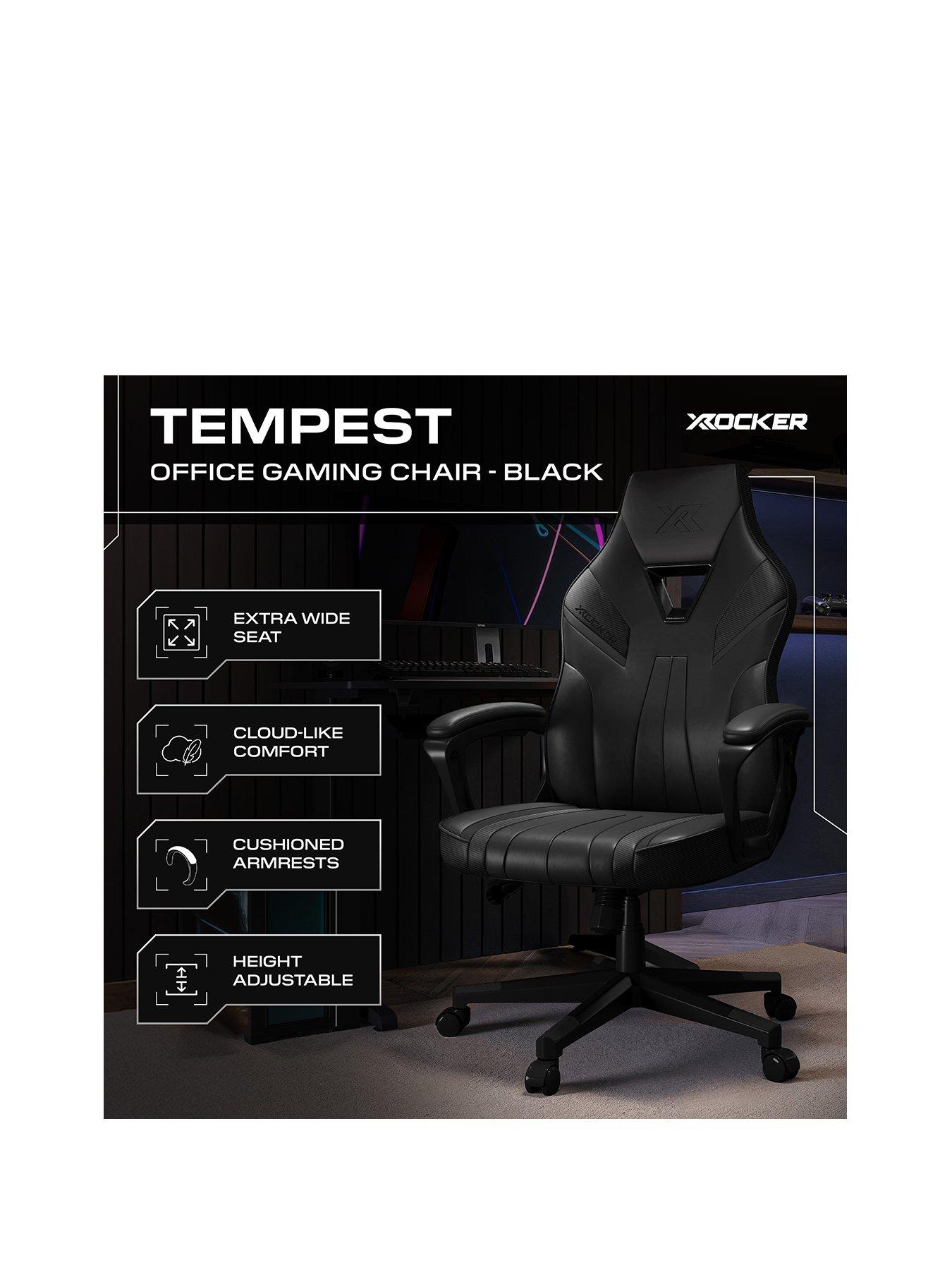 X Rocker Tempest Ergonomic PC Office Gaming Chair - BlackGAME HARDER. WORK SMARTER.Elevate your space with the X Rocker Tempest Ergonomic PC Office Gaming Chair - the ultimate fusion of performance, style and unbeatable comfort. Whether you're conquering a new game, streaming, or powering through a work project, the Tempest keeps you focused and in command. The ergonomic curved mid-back design and generously padded seat and armrests deliver all-day support, while the bold, modern aesthetic makes a statement in any gaming setup.