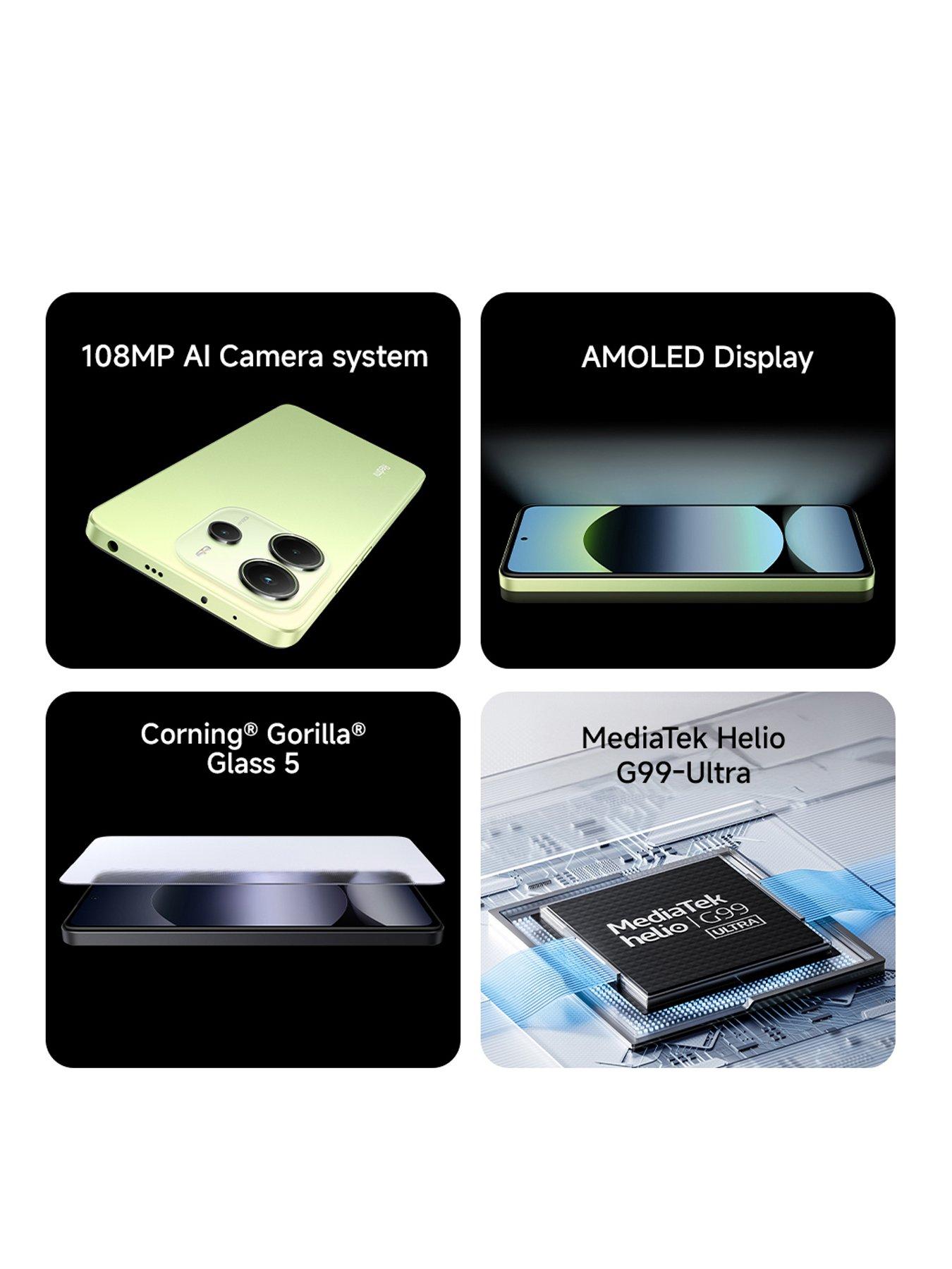 Xiaomi Redmi Note 14, 4G, 6+128, GreenBEAUTIFUL DISPLAY The Xiaomi Redmi Note 14 features a stunning 6.67 inch Full HD+ AMOLED screen (2400 x 1080, 120Hz) that ensures all your visuals are beautifully smooth. The balanced, bezel-less display achieves an impressive 20:9 aspect ratio - perfect for all your movies, websites, games and photos. This eye-care display features circadian rhythm adjustment which intelligently adjusts to natural light to reduce the impact on sleep when using your Redmi Note 14 4G at night. Dual speakers offer a more immersive sound experience. SLEEK PERFORMANCE Powered by the Mediatek Helio G99 Ultra processor, supported by 6GB RAM, the Redmi Note 14 4G offers an outstanding everyday experience, including smooth streaming and gaming. With 128GB built-in storage, you can carry around plenty of entertainment, photos and more. EXCELLENT CAMERAS Shoot superb photos and video with the triple-lens rear camera featuring a 108MP PDAF main sensor, 8MP ultra-wide sensor, and 2MP macro lens. There's also a 20MP front camera for video chats and selfies. FAST CHARGING The Xiaomi Redmi Note 14 features a 5110mAh battery that is built to last It's also compatible with 45W fast charging, so you'll soon get back to 100%. There's also an under-display fingerprint sensor for excellent security.