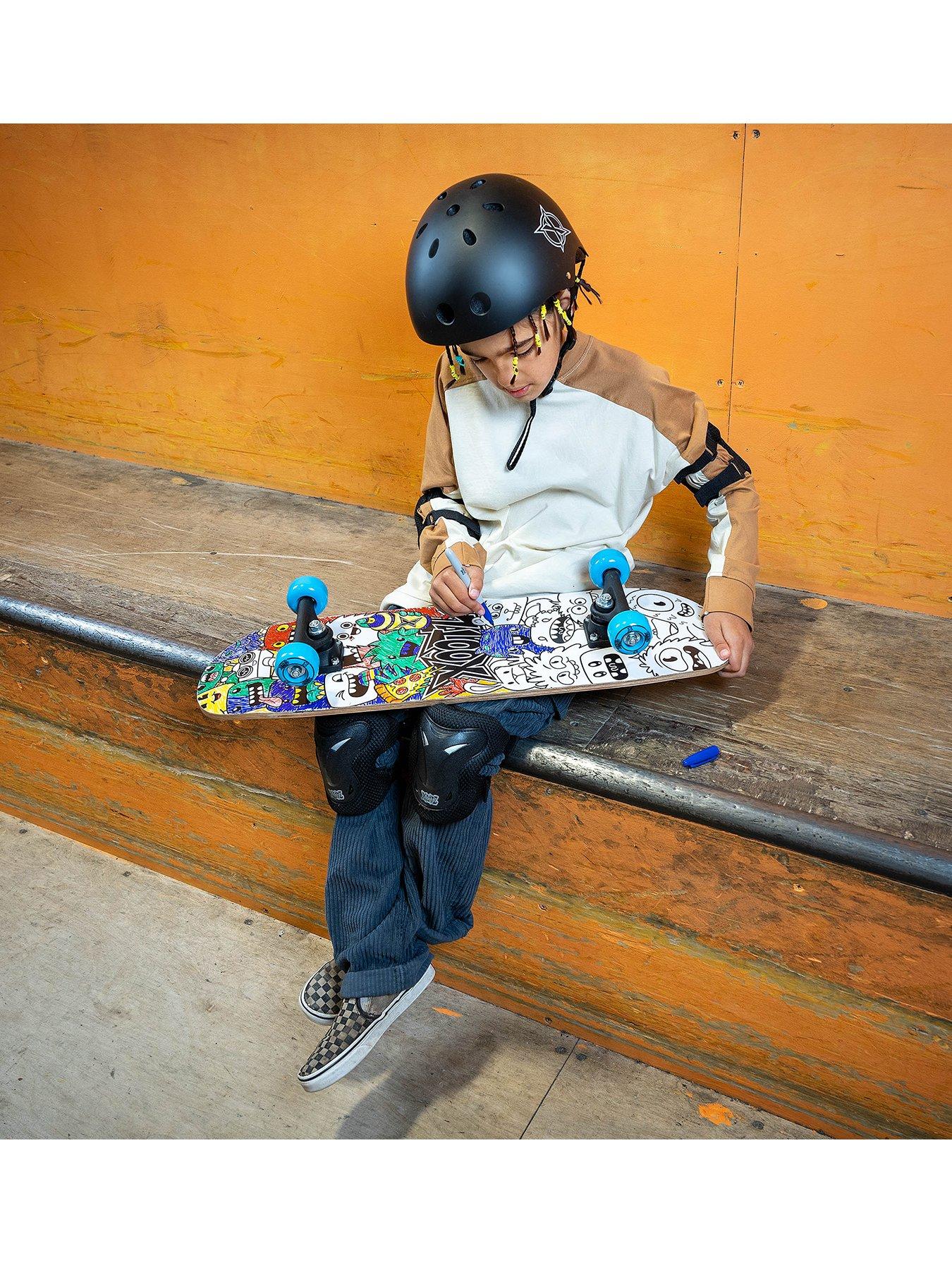 The customisable skateboard features a fun colour in design on the bottom so that your little ones can get creative and make their board truly unique to them.