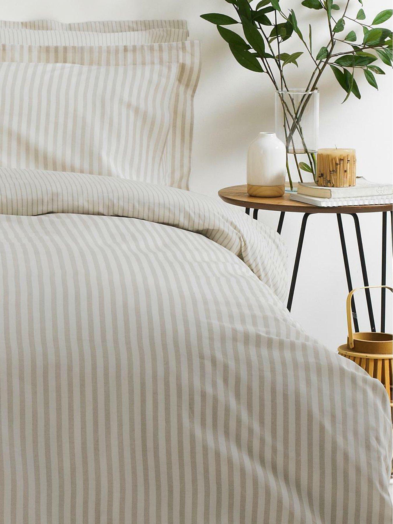 Yard Hebden Stripe 100% Cotton Duvet Set NaturalFrom The Yard comes Hebden, a stunning duvet cover and pillowcase set that uses classic styling as its inspiration.The subtle melange print running throughout builds a luxurious vertical stripe visual, while the versatile natural and white palette gives a wonderfully soothing effect. It’s fully reversible, too, so you can flip it over to reveal an alternative take on the pattern any time you like. For an added hint of charm, the coordinating pillowcases are finished with Oxford edges. Made from 100% cotton, the soft, breathable fabric is perfect for immersing yourself in after a long, hard day. A set comprises one duvet cover and one pillowcase in single, two pillowcases in double and king sizes.