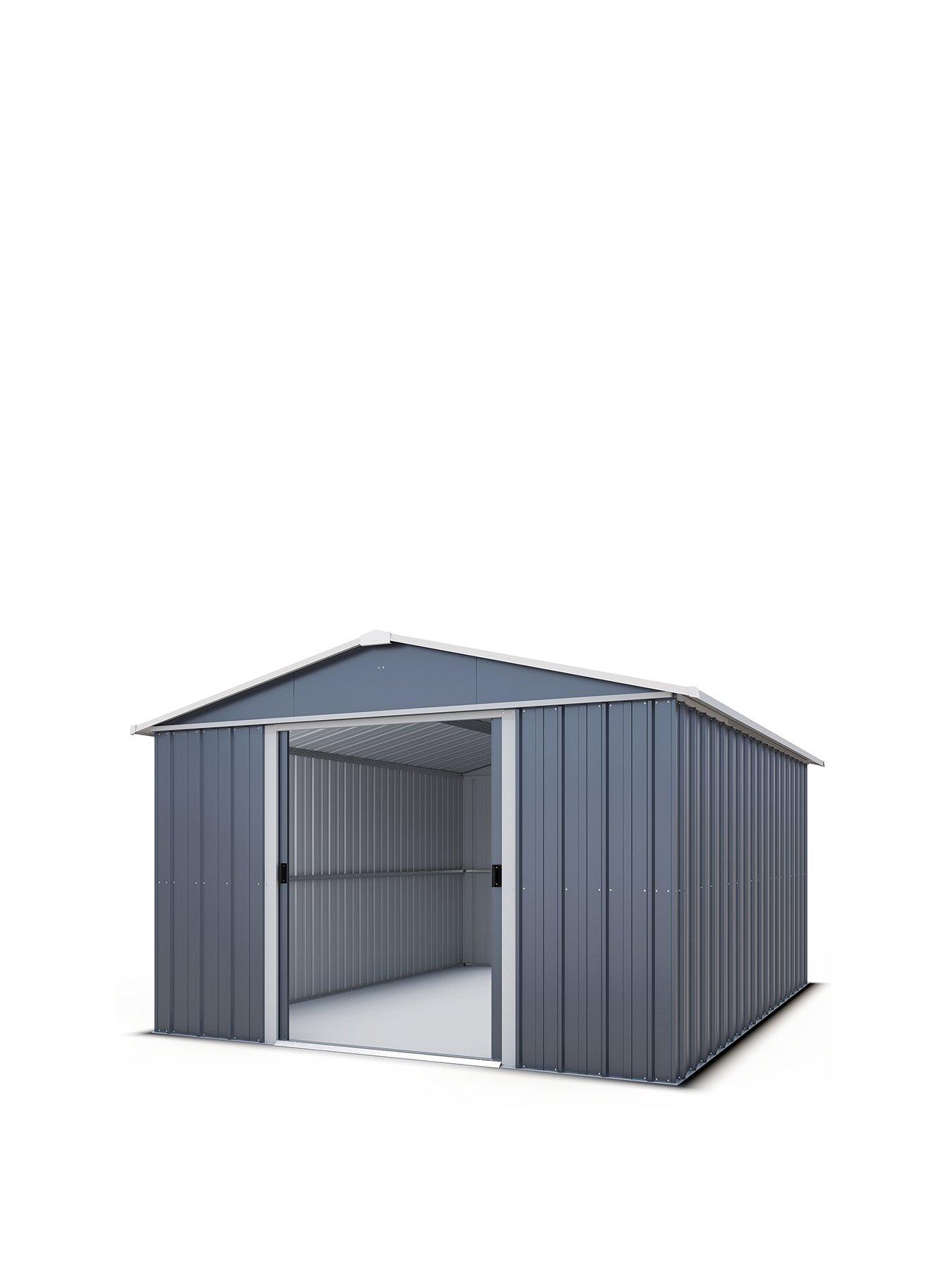 Yardmaster 10ft X 8ft Castleton Apex Roof Metal ShedThe Yardmaster 10 x 8ft Castleton apex roof metal shed is a premium choice for homeowners searching for a durable, maintenance-free garden storage solution that offers long-lasting performance in all weather conditions. Manufactured in the UK from hot-dipped galvanised steel, this high-quality metal shed provides best-in-class resistance to rust, corrosion and general wear and tear. Key components such as the doors and roof gables are made from steel which is typically twice as thick as that found in cheap imported metal sheds, making the Castleton exceptionally tough and built to withstand daily use and extreme weather. The Yardmaster 10 x 8ft Castleton requires no painting, staining or yearly treatment, meaning it's a truly low-maintenance storage solution for busy households.With its classic apex roof design, this shed offers generous internal headroom, making it ideal for storing tall items, garden tools, lawnmowers, outdoor equipment, bikes and seasonal furniture. The smooth sliding doors provide effortless access while saving space and can be easily secured with a padlock. Multiple ventilation slots promote good internal airflow to reduce condensation, keeping stored items fresh and dry. Every component is precision-engineered with pre-drilled holes for fast, straightforward assembly. An anchor kit is also provided for fixing the shed down to a firm, level base. The Yardmaster 10 x 8ft Castleton metal shed is perfect for anyone looking for a reliable, weather-resistant and cost-effective alternative to wooden or plastic resin sheds. Its extra-strong construction, sleek modern finish, and heavy-duty storage capacity enhance any outdoor space while offering the practical durability today's homeowners need.