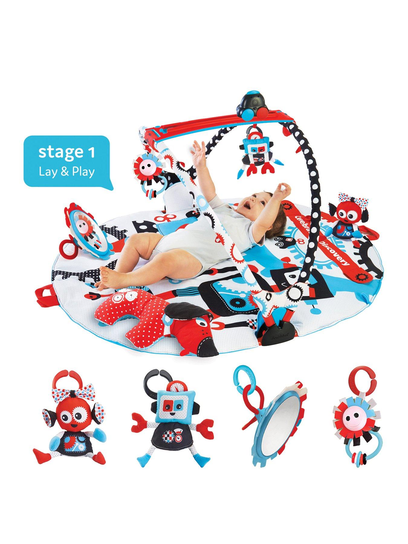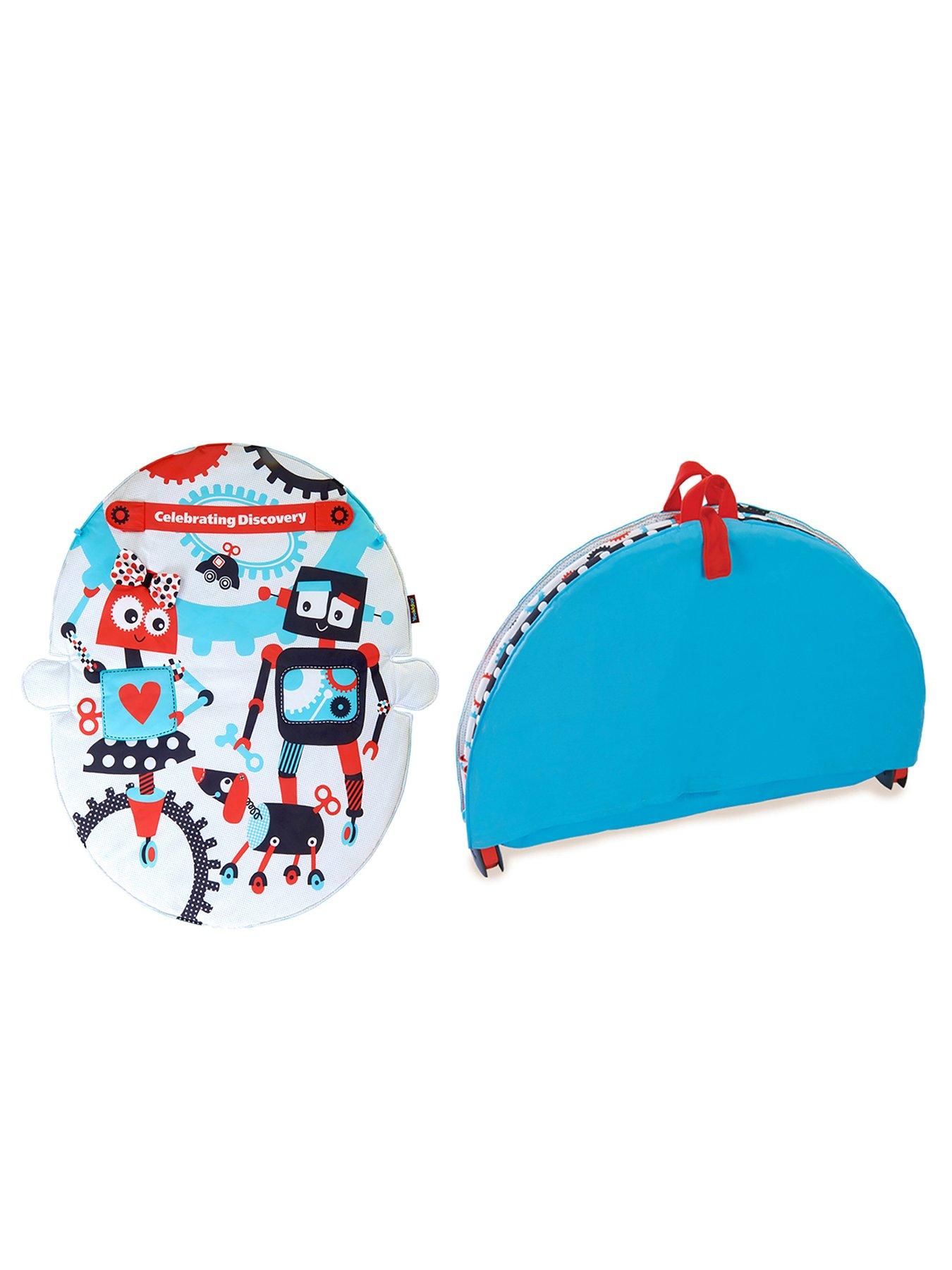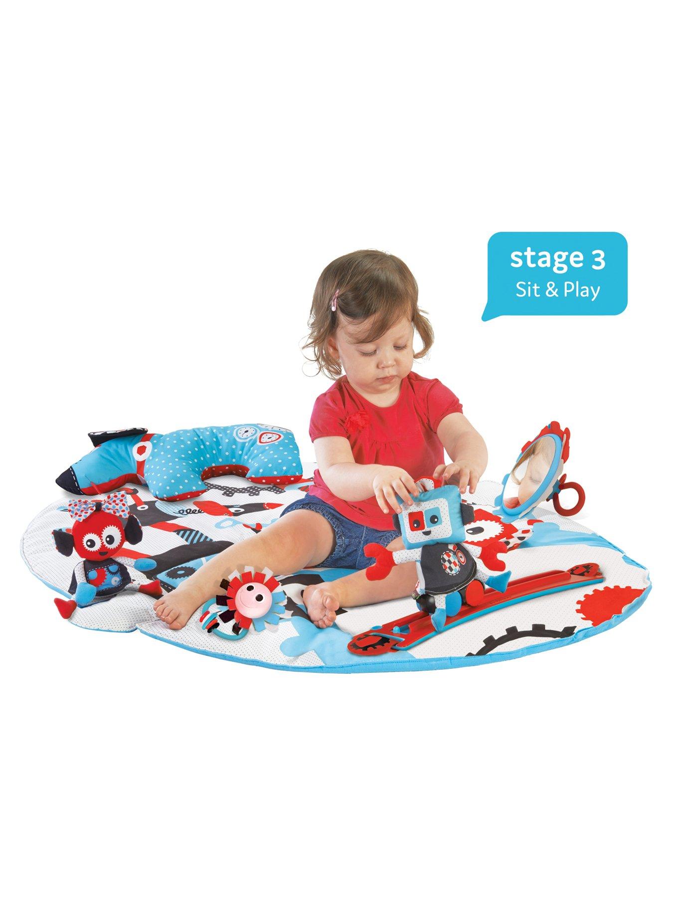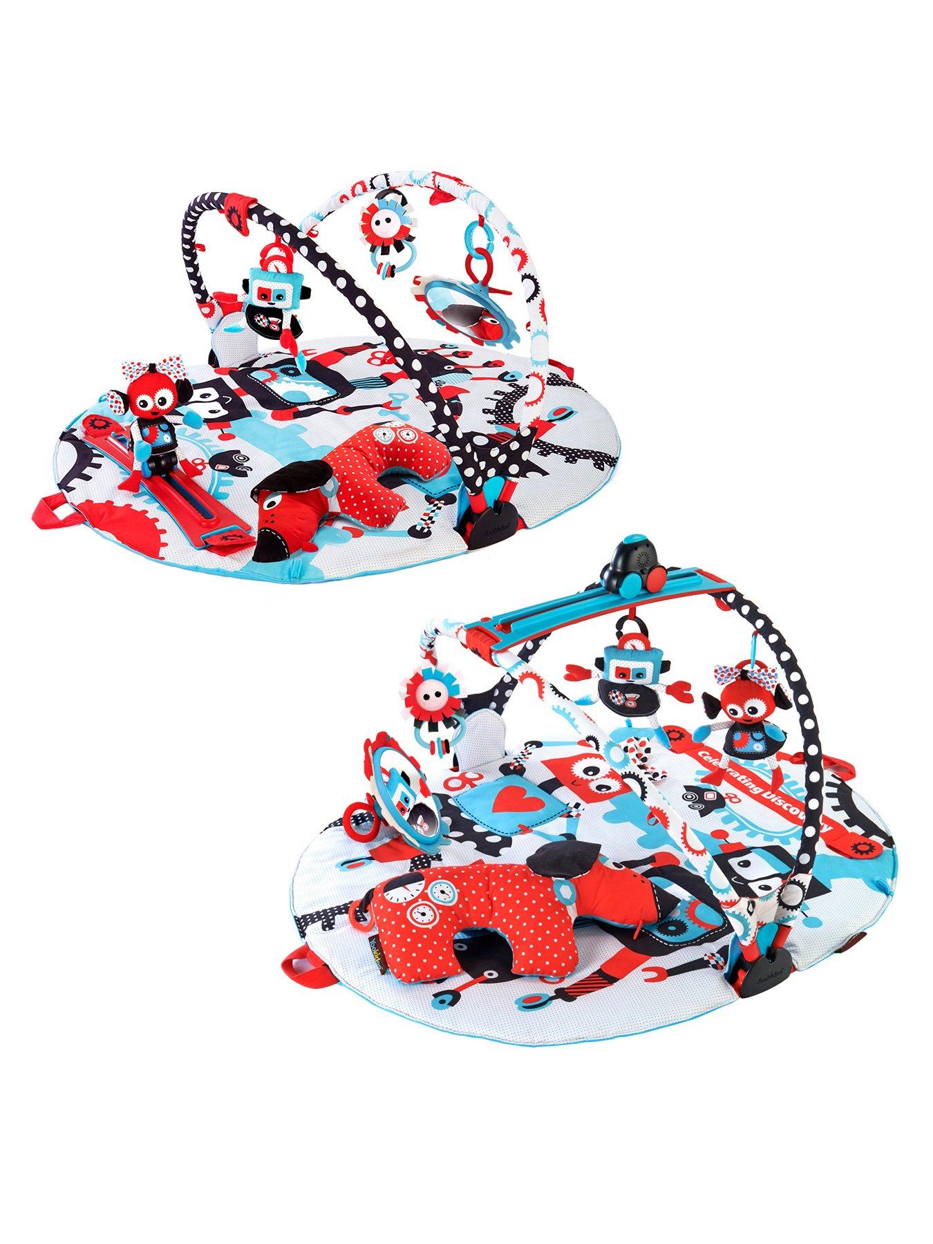 This, award-winning, activity gym with a 2-in-1 Magical Mobile and a tummy-time pillow, is a robo-themed Playland for baby's first year - laying on their back in the early months, through tummy-time, then sitting up - all while igniting curiosity and fun.