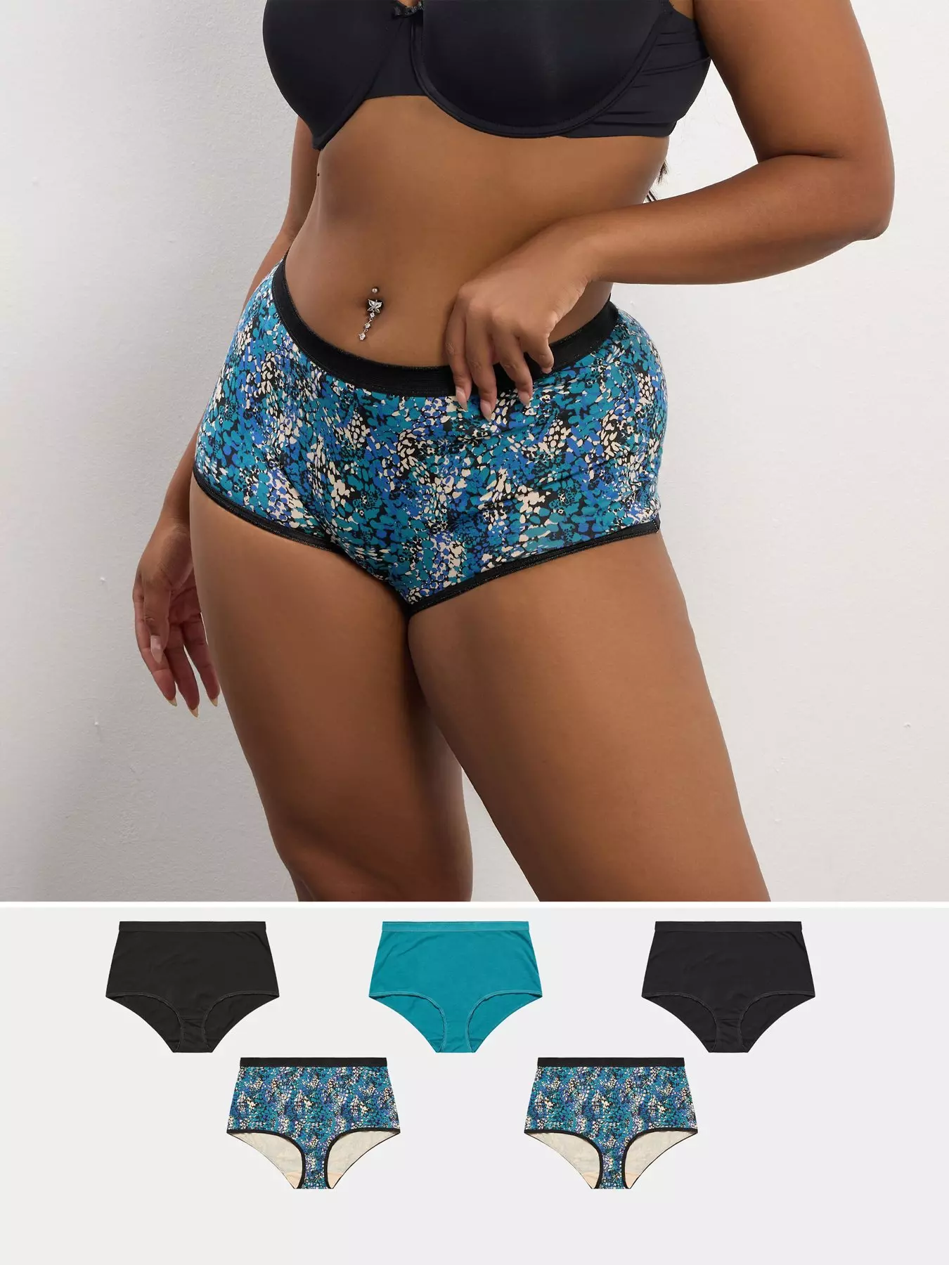 YoursCurve 5 Pack Snake Print Full Brief - Blue