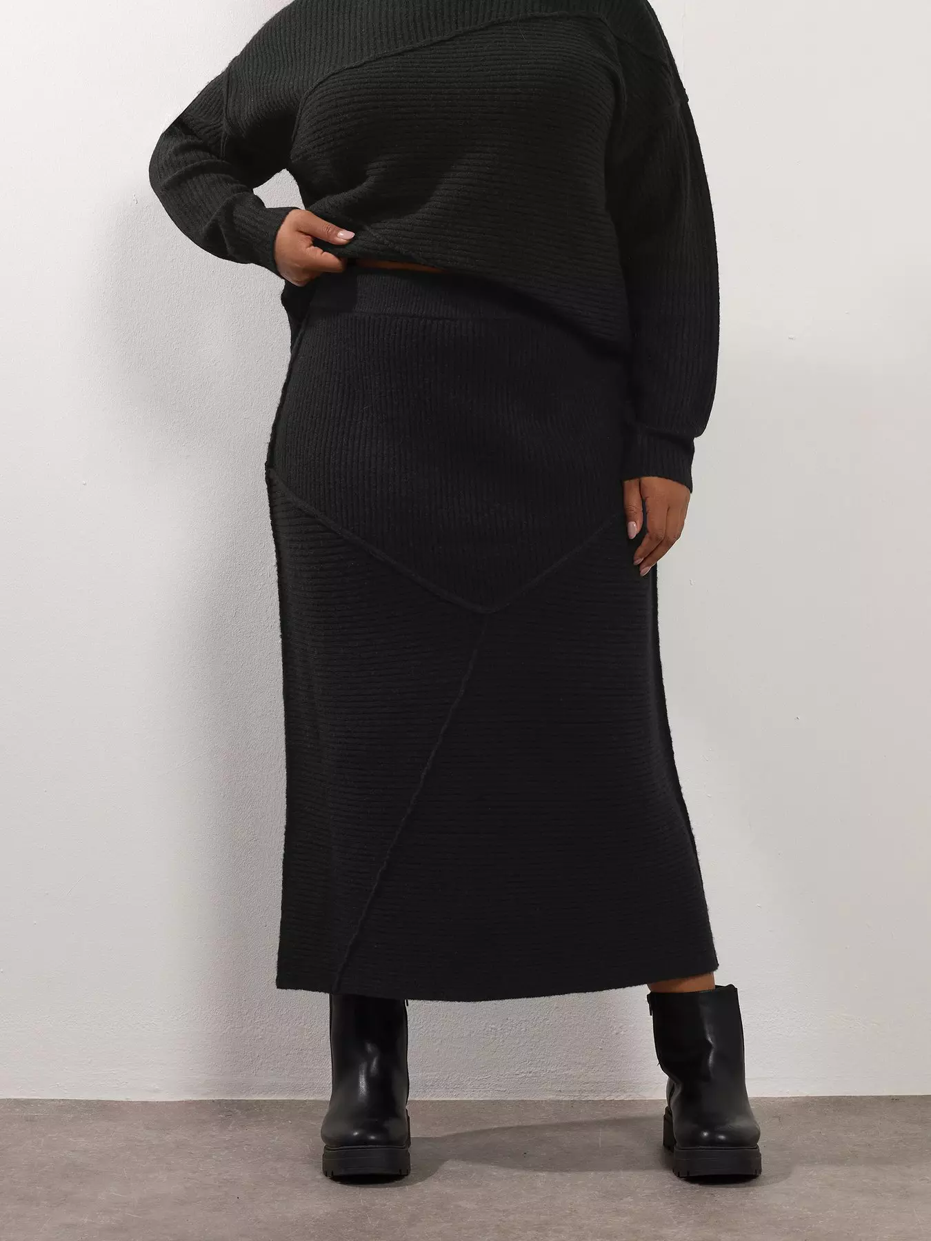 YoursCurve Asymmetric Skirt - Black