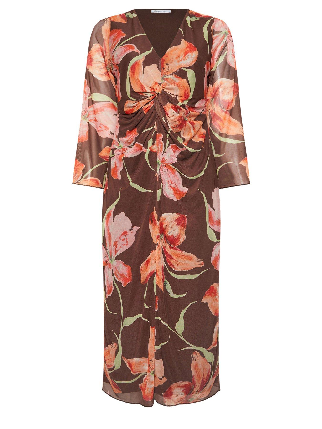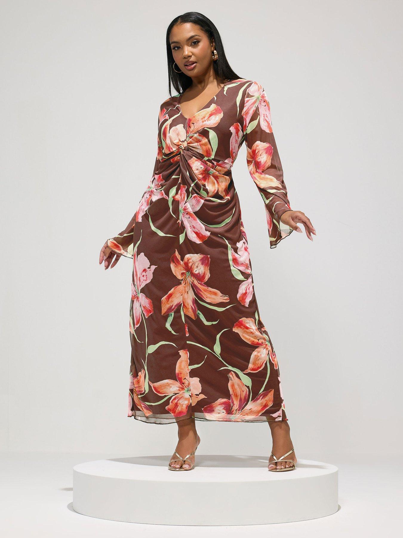 Yours Curve Blur Knot Mesh Maxi DressFloral print, Knot design, Long sleeves, V-neckline, Maxi length, Made from a comfortable mesh fabric, 90 polyester, 10 elastane, Length from approx: 133cm/52.4, Machine washable