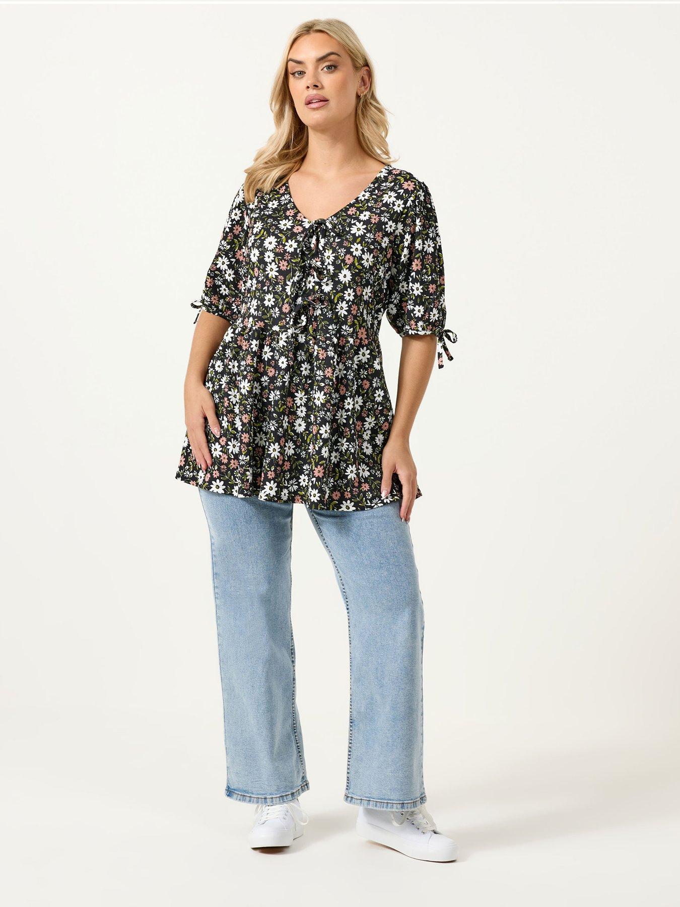Yours Curve Bow Front Ditsy Peplum T-shirtDitsy floral print, Bow tie front , Peplum style, Short bow detail sleeves, V-neckline, Made from a textured jersey fabric, 95 polyester, 5 elastane, Length from approx: 76cm/29.9 , Machine washableAbout the brand: Yours is a leading plus-size fashion brand, dedicated to creating trend-led pieces that fit and flatter. From everyday staples to standout occasion styles, the brand celebrates confidence, individuality and style without compromise. |