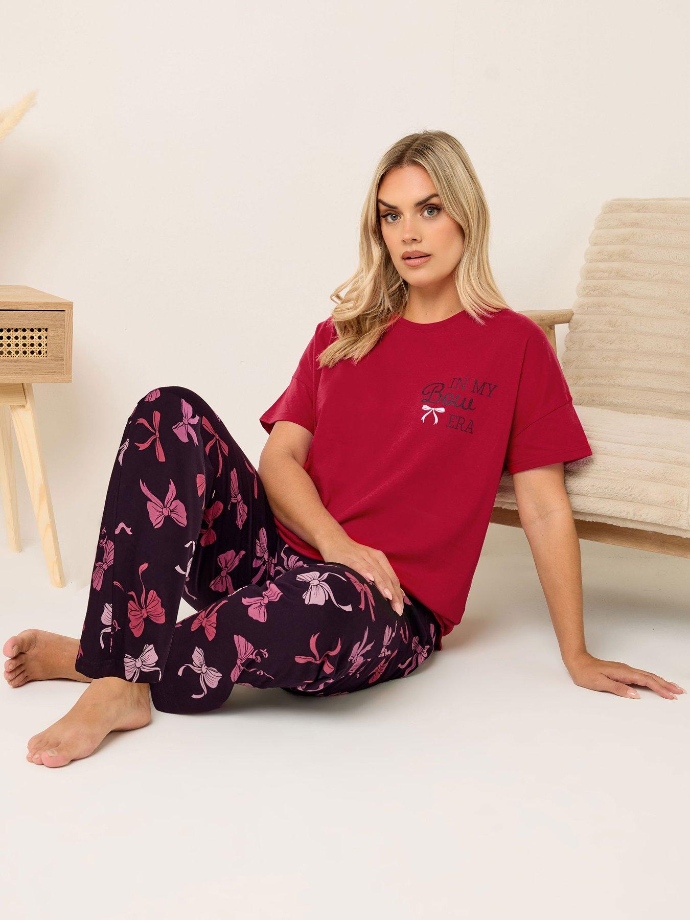 • Curve Bow Short Sleeve Wide Leg Pj Set by Yours