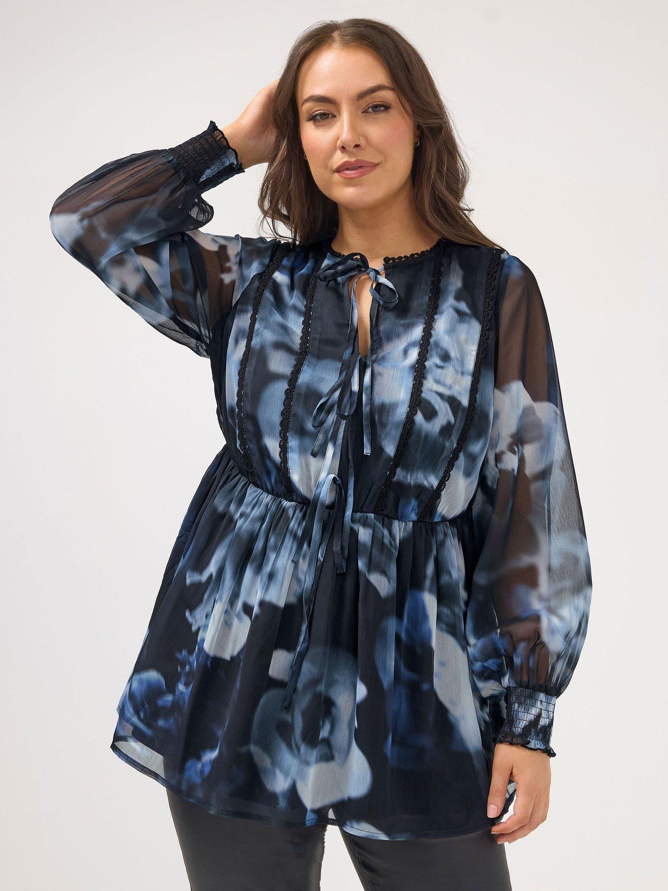 • Curve Crochet Tape Tie Front Blouse by Yours