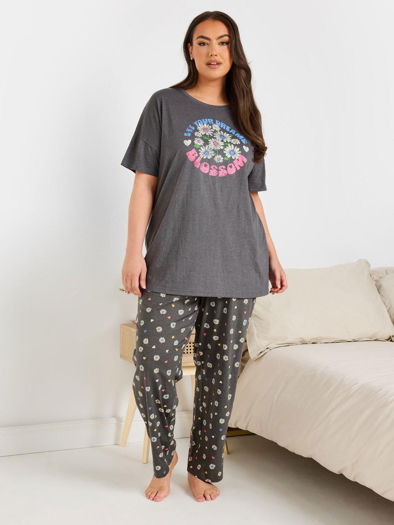 Yours Curve Dreams Bloom Wide Leg Pj SetFloral print, Let Your Dreams Blossom slogan, Wide leg design, Elasticated waistband, Short sleeves, Crew neckline, Made from a soft woven fabric, 60 cotton, 40 polyester, Length from approx: 83.5cm/32.8, Inside seam measures: 71cm/27.9, Machine washableAbout the brand: Yours is a leading plus-size fashion brand, dedicated to creating trend-led pieces that fit and flatter. From everyday staples to standout occasion styles, the brand celebrates confidence, individuality and style without compromise. |