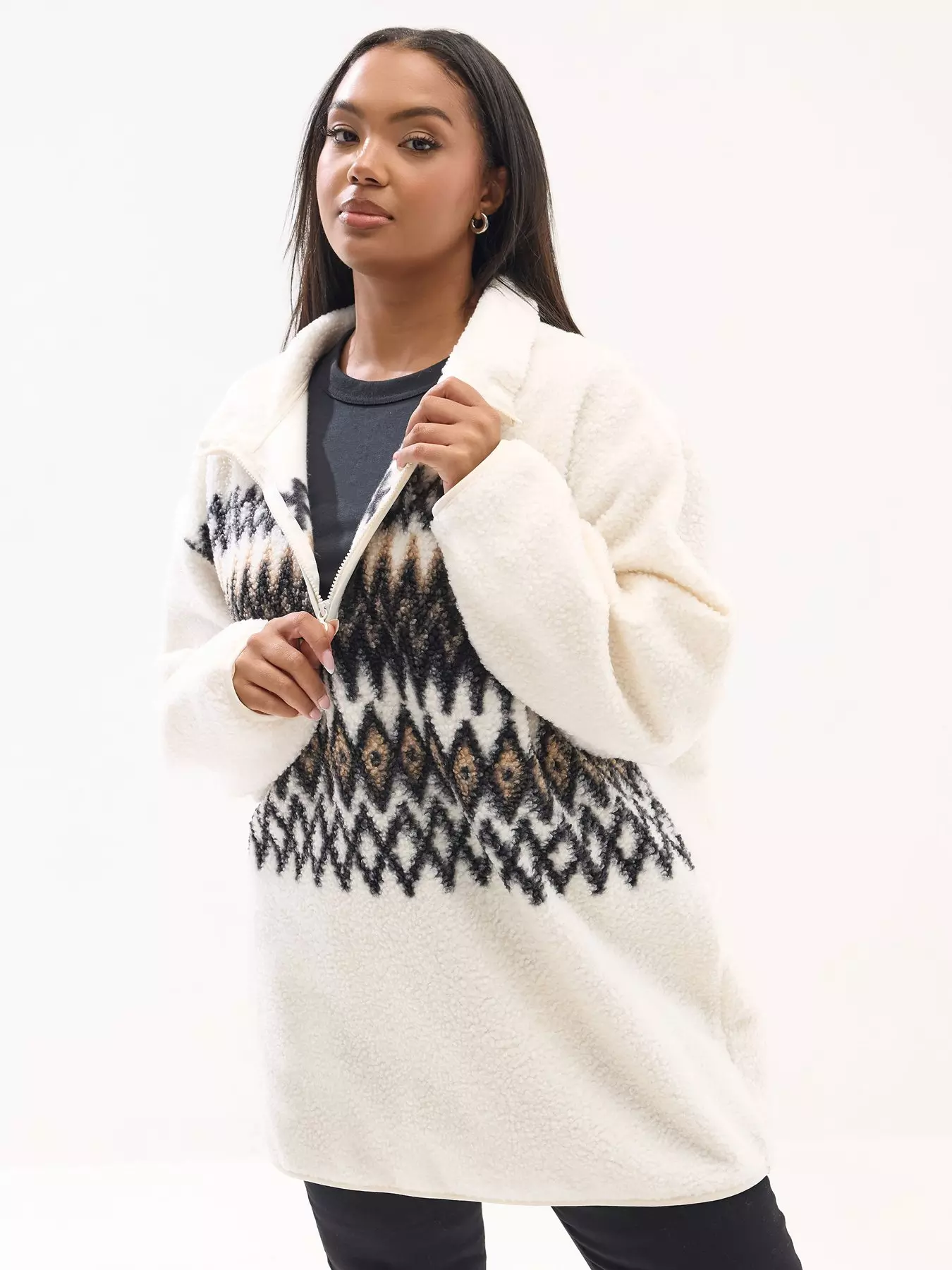YoursCurve Half Zip Mini Borg Fleece - Natural