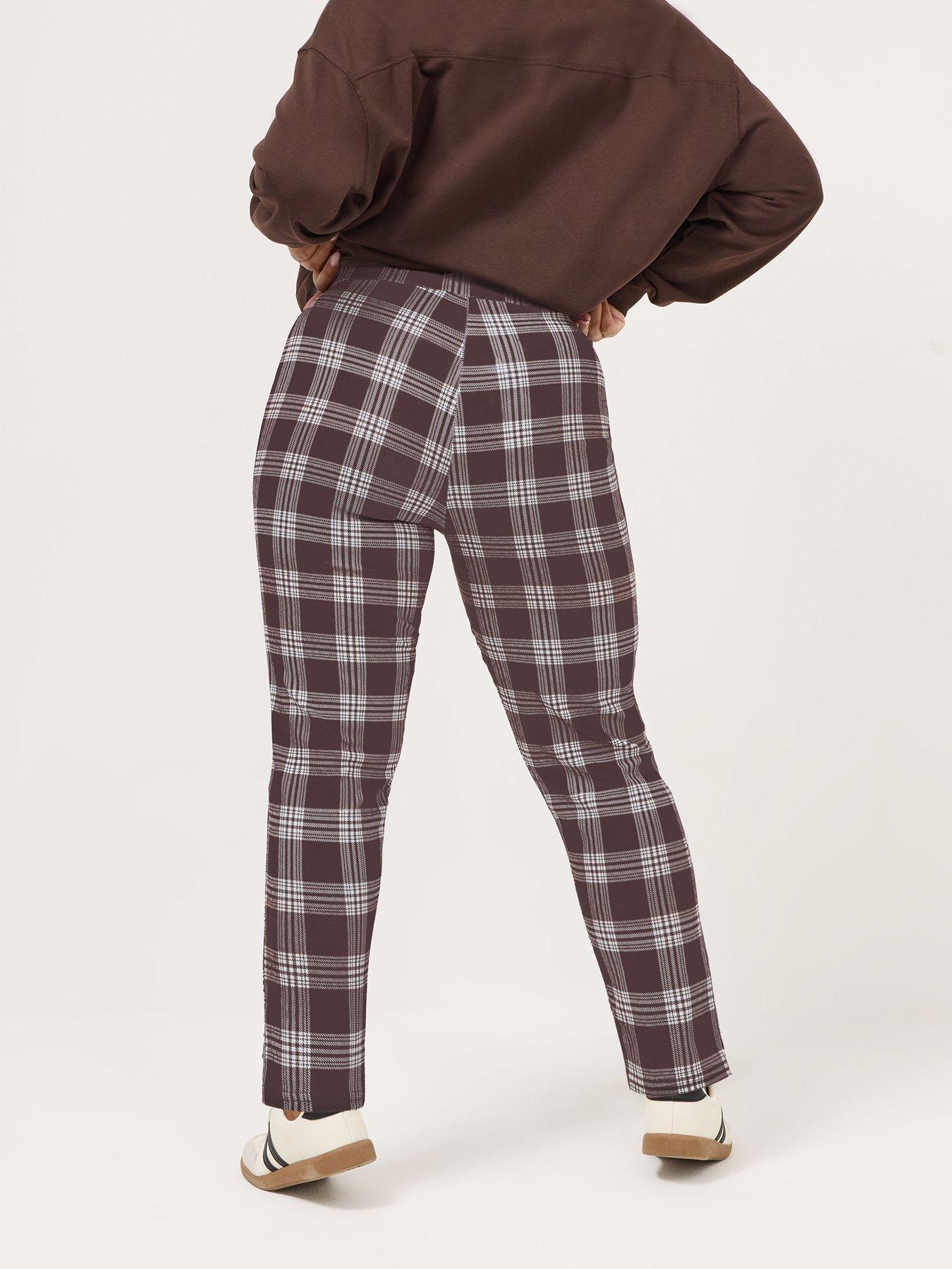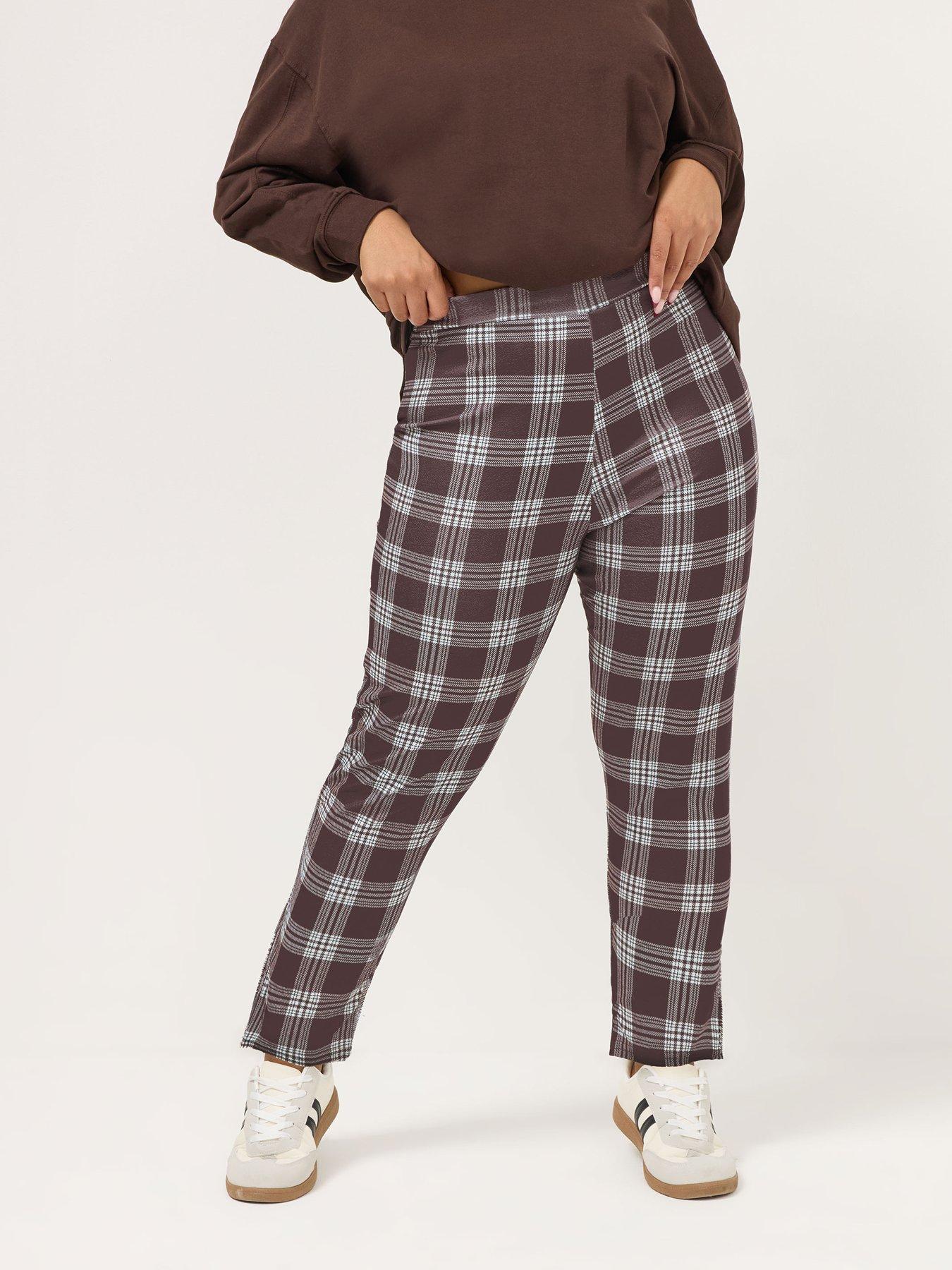 Yours Curve Knitted Crepe Check Tapered Trousers