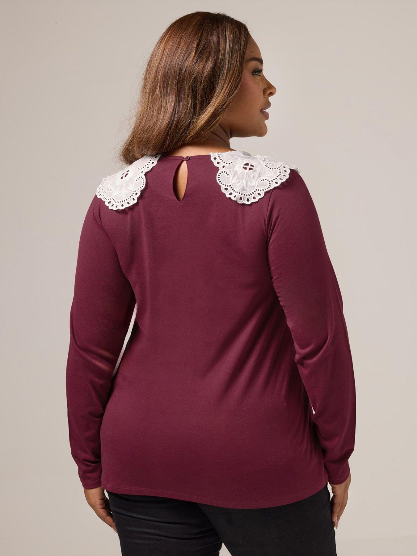 Yours Curve Lace Collar Long Sleeve A-Line Top
