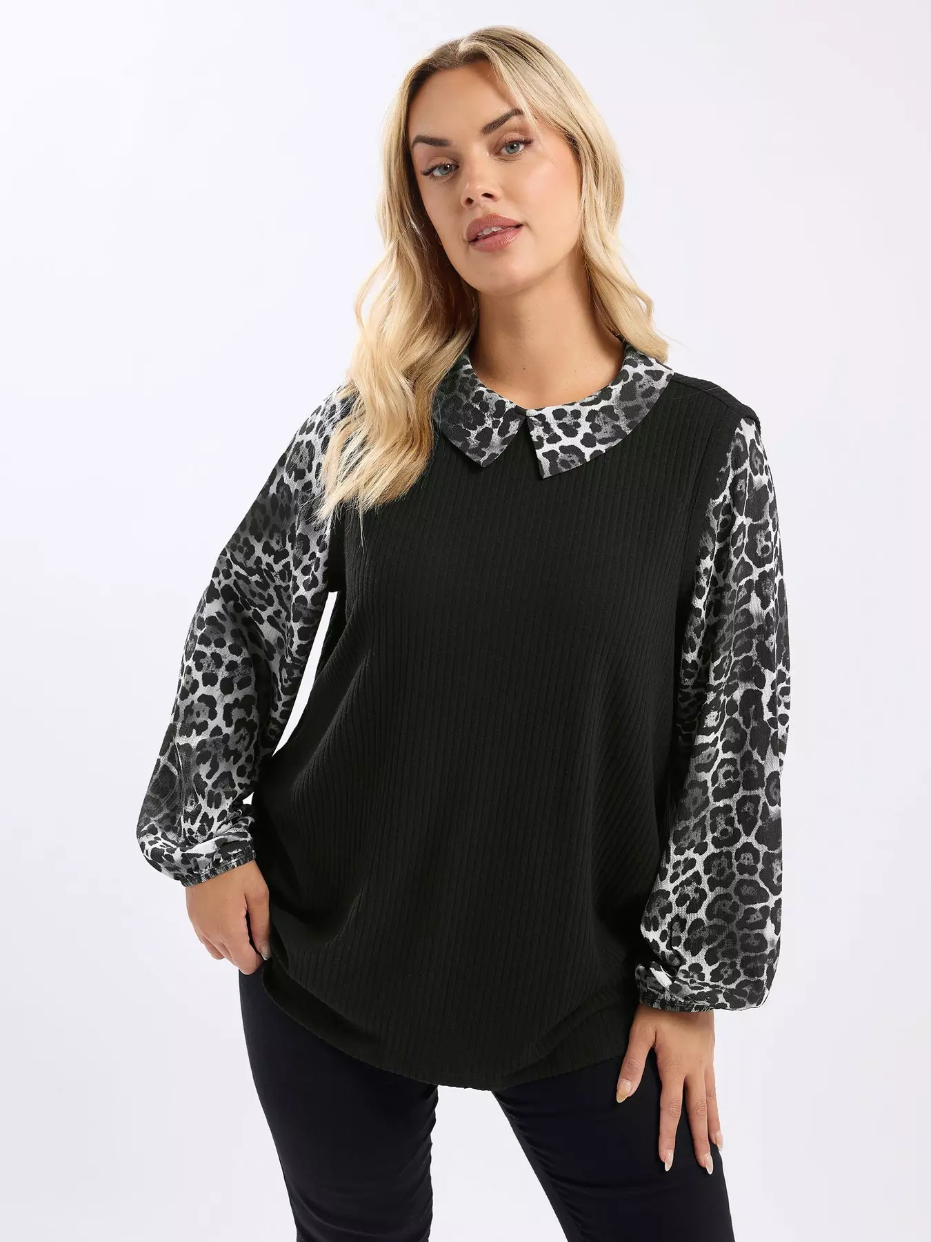 YoursCurve Leopard Print Brushed Top - Black