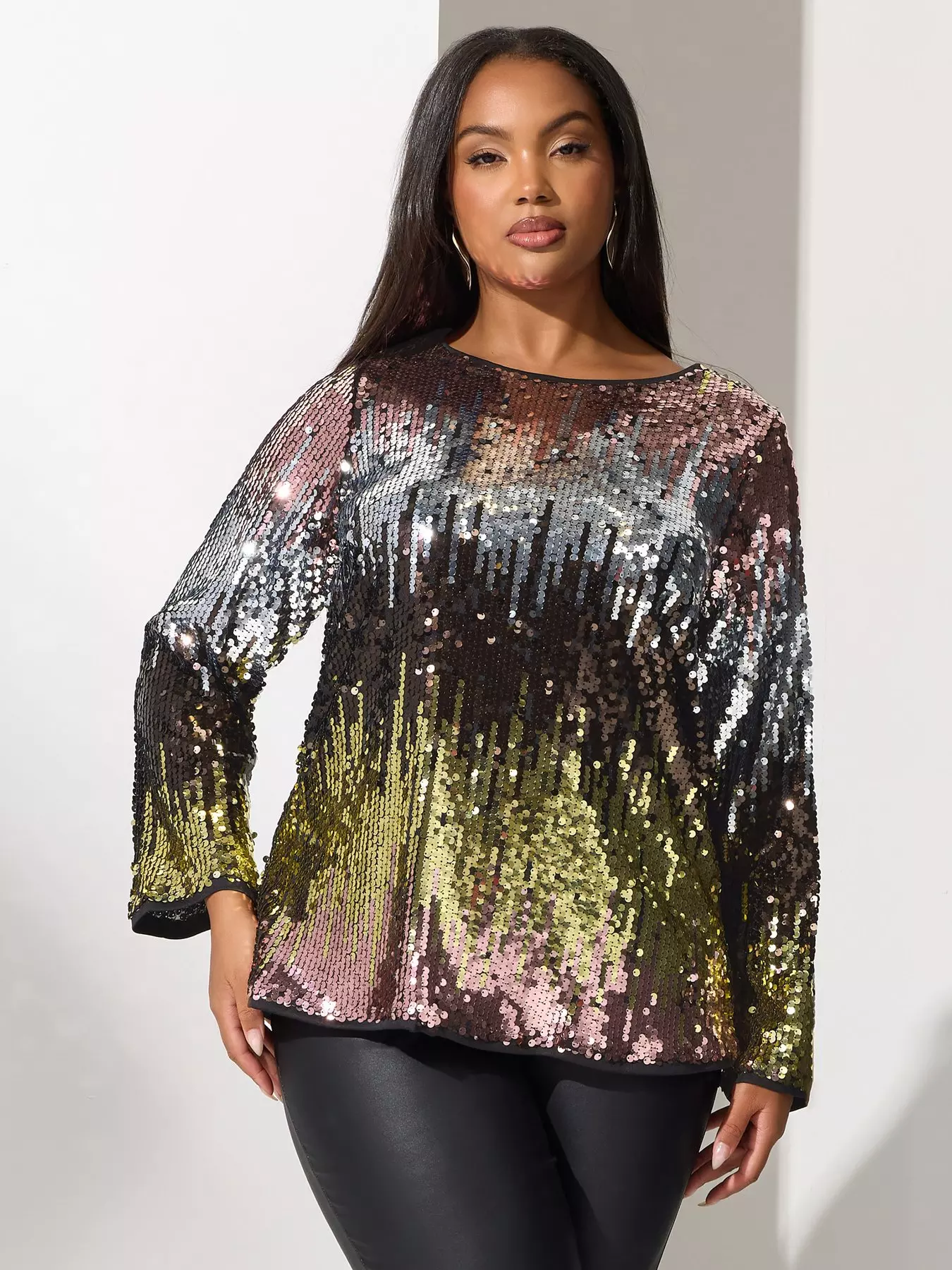 - Curve Multi Bow Back Sequin Ombre Top by Yours