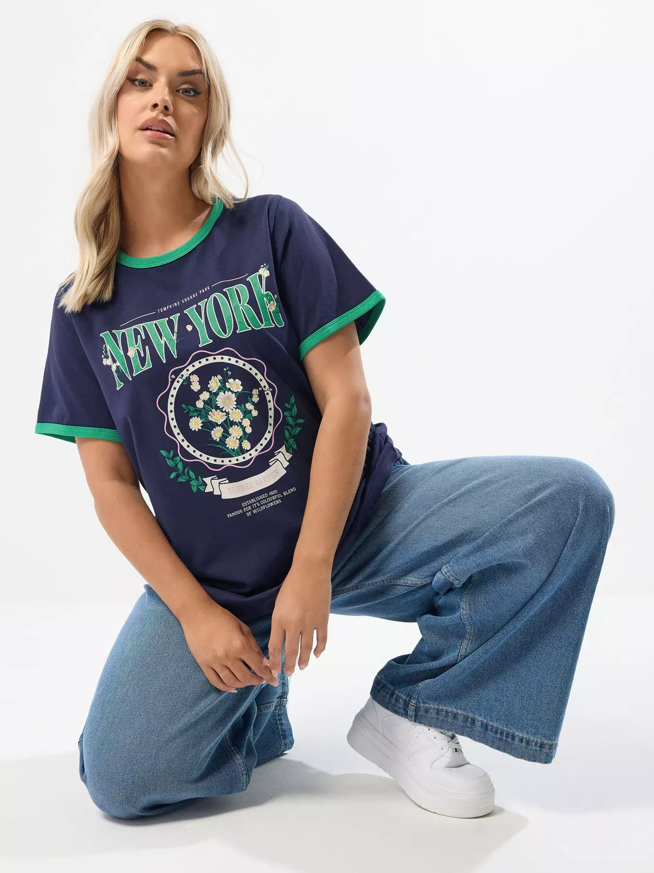 YoursCurve Placement Set In Sleeve T-Shirt - Blue