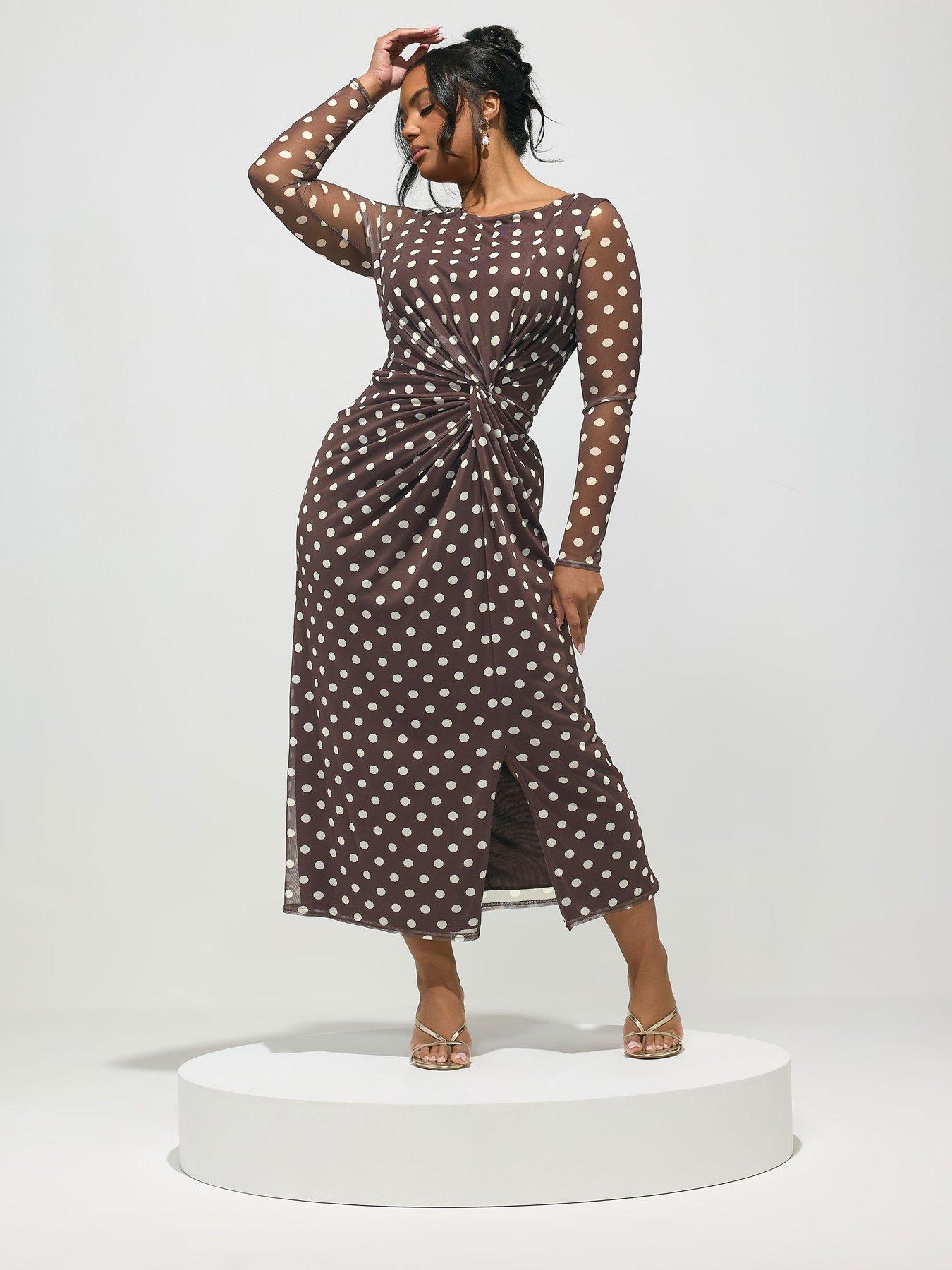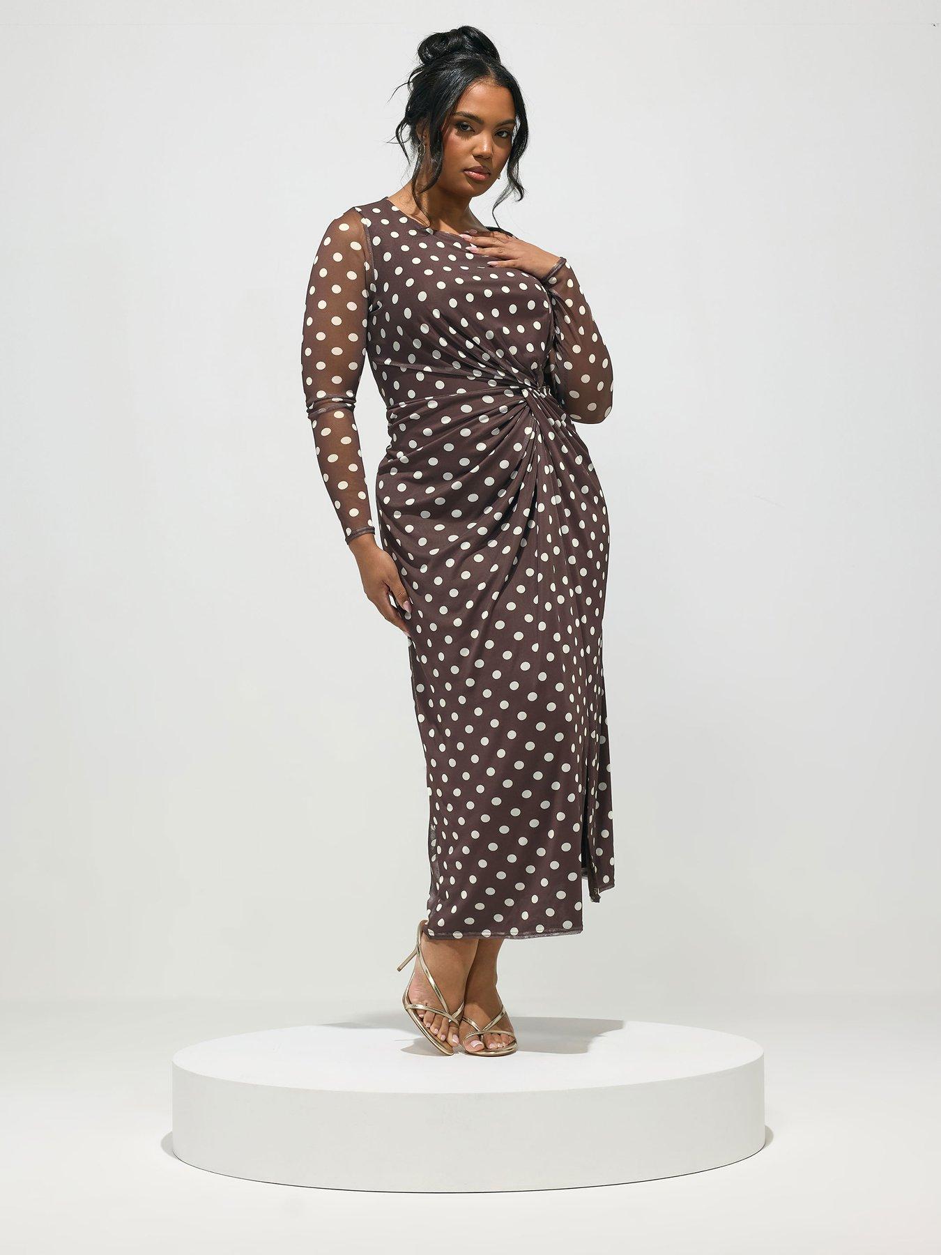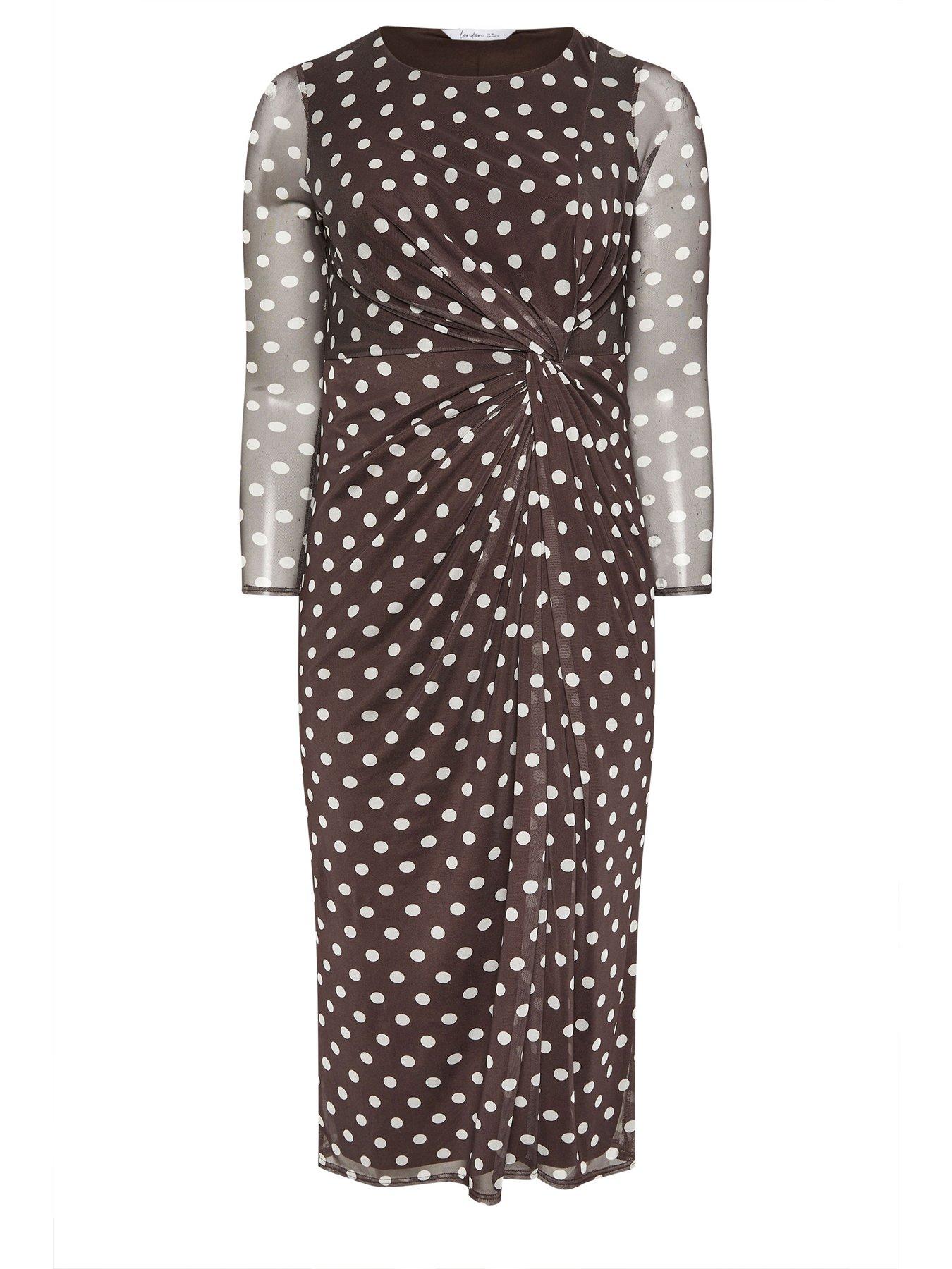 Yours Curve Polkadot Side Knot DressPolka dot print, Side knot detail, Mesh finish, Fully lined, Long sleeves, Made from a comfortable jersey fabric, 90 polyester, 10 elastane, Length from approx: 122cm/40, Inside seam measures: Machine washable