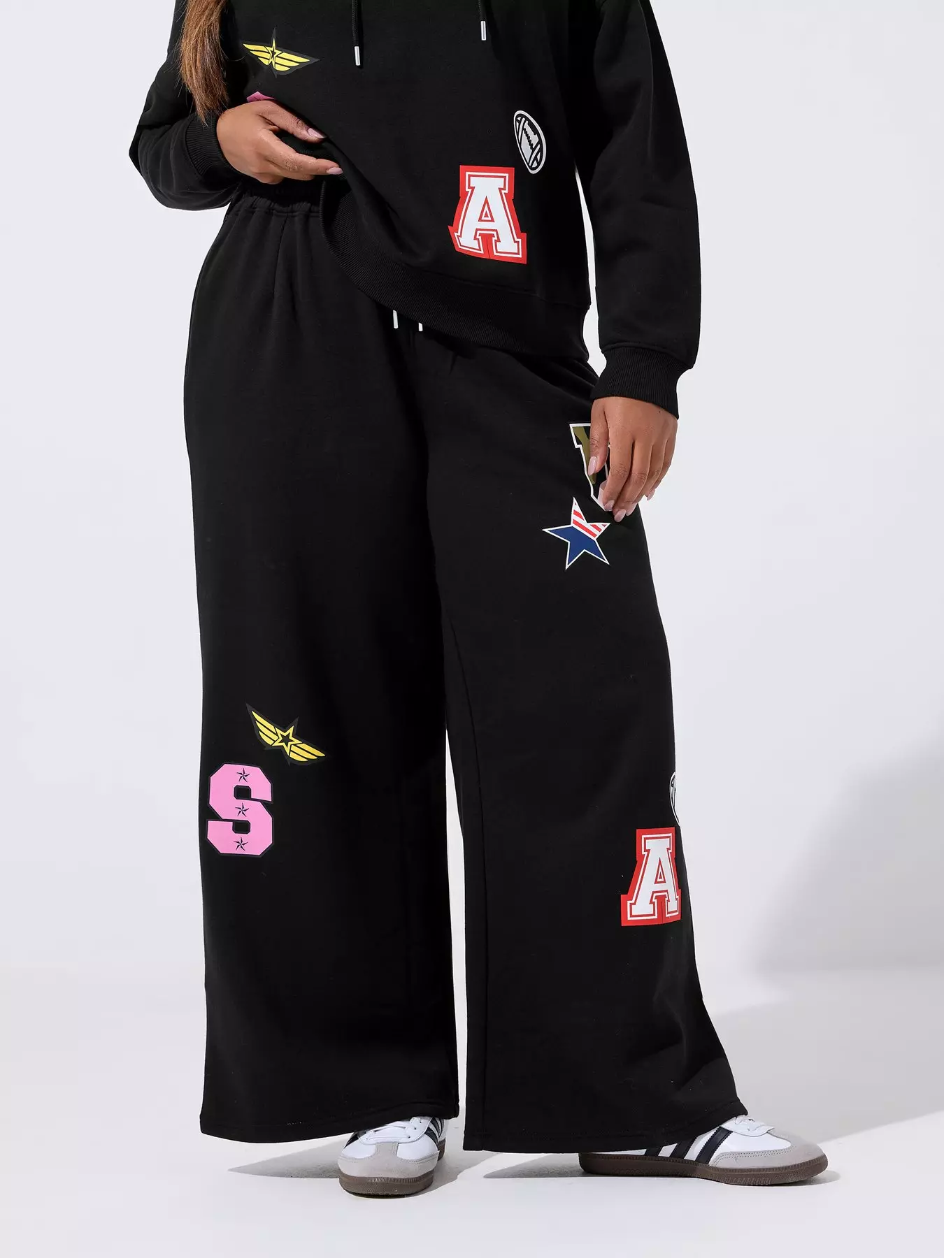 YoursCurve Printed Badge Wide Leg Jogger - Black