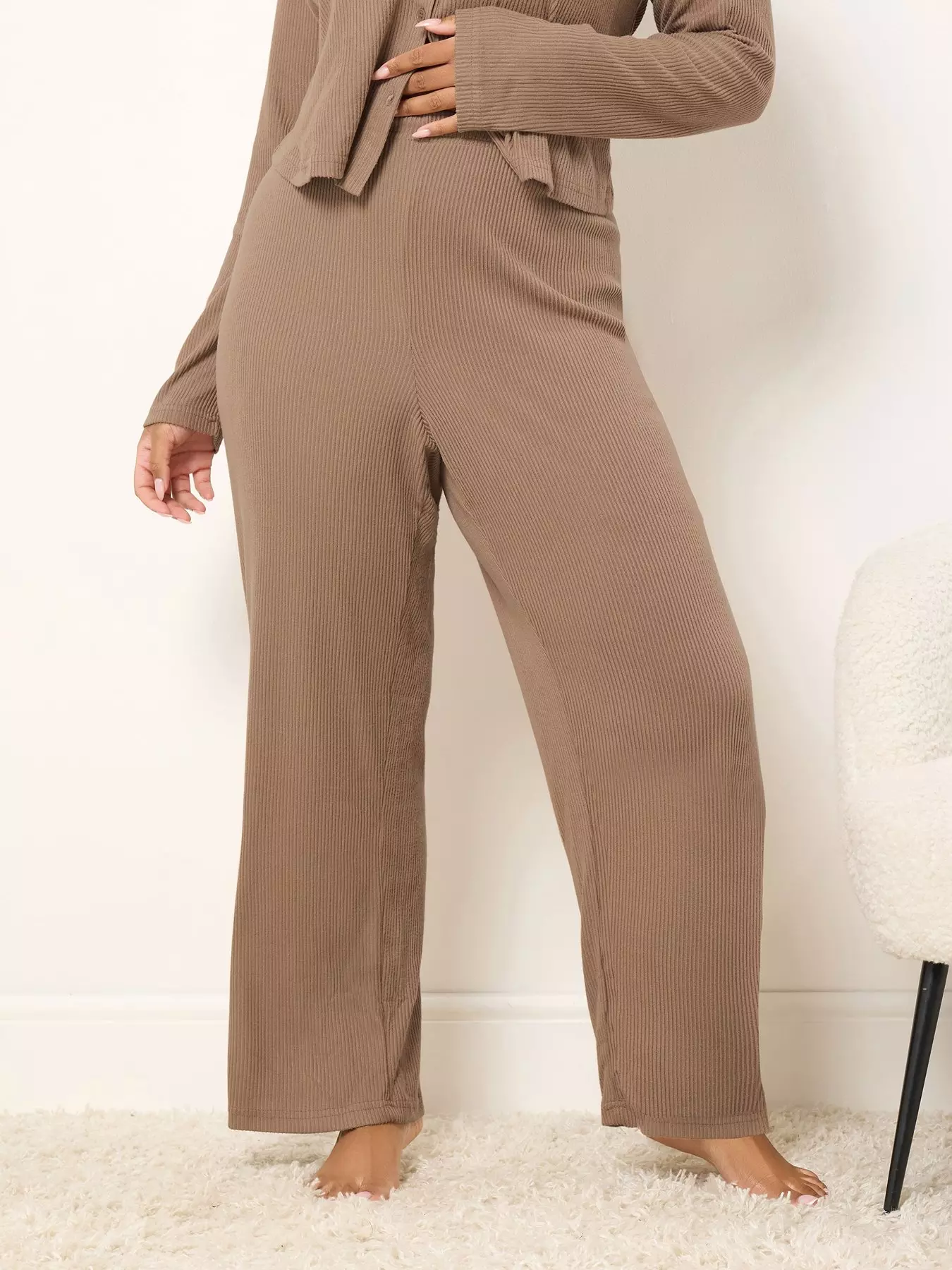 YoursCurve Ribbed Wide Leg Lounge Trouser - Brown