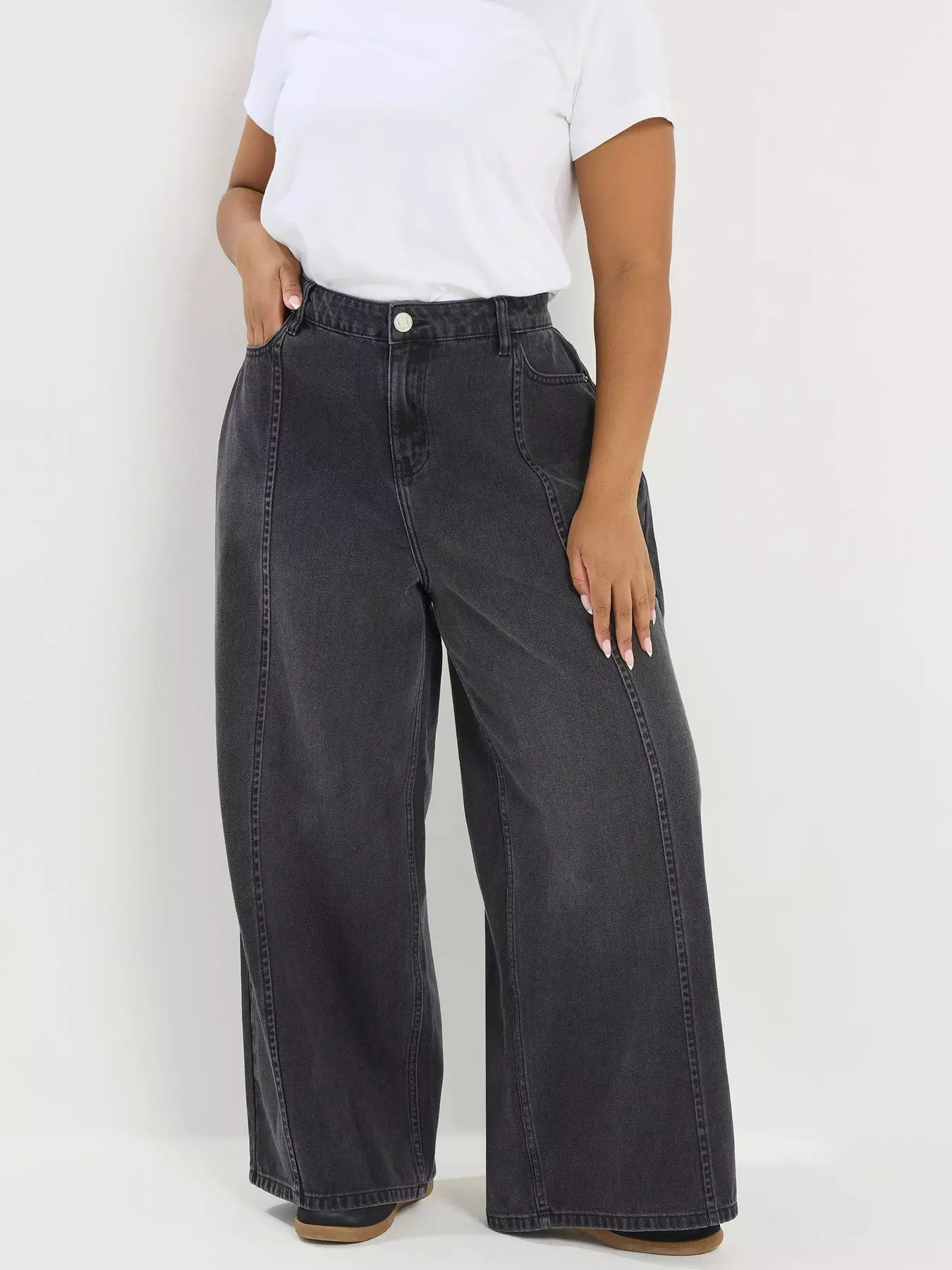 Yours Curve Rigid Plazzo Front Seam Jeans