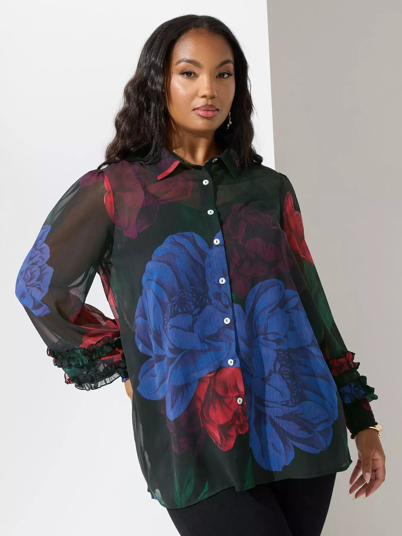 Yours Curve Ruffle Cuffed Sleeve Shirt