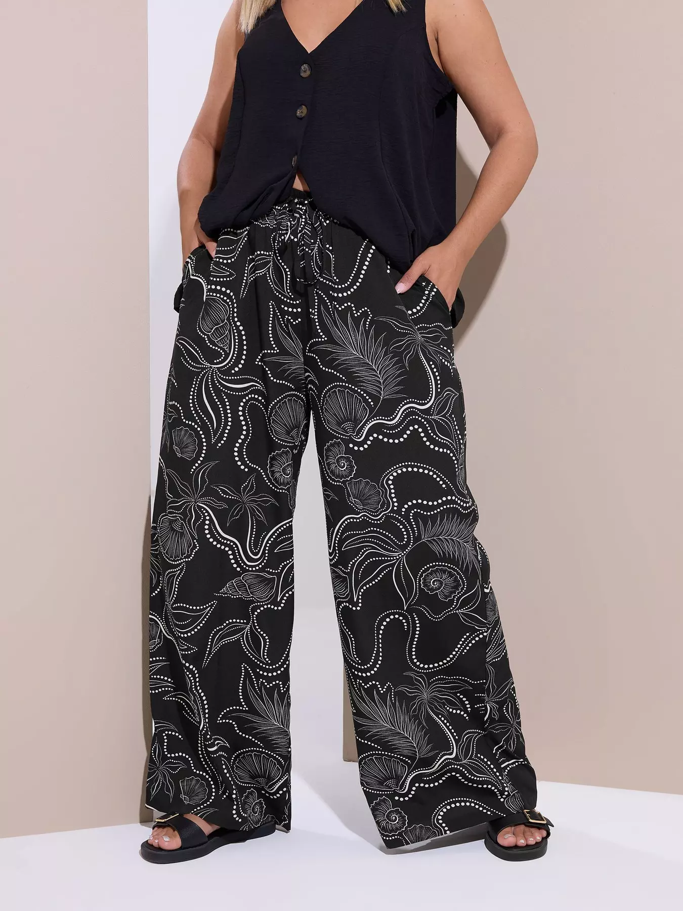 YoursCurve Shell Print Wide Leg Trouser - Black