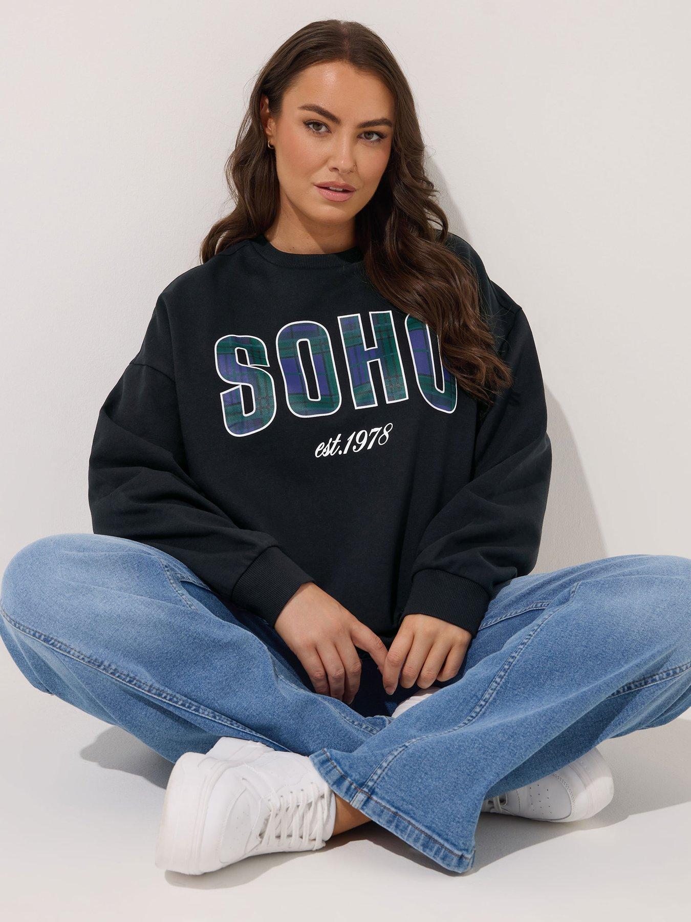 Yours Curve Soho Check Crew Neck Sweatshirt