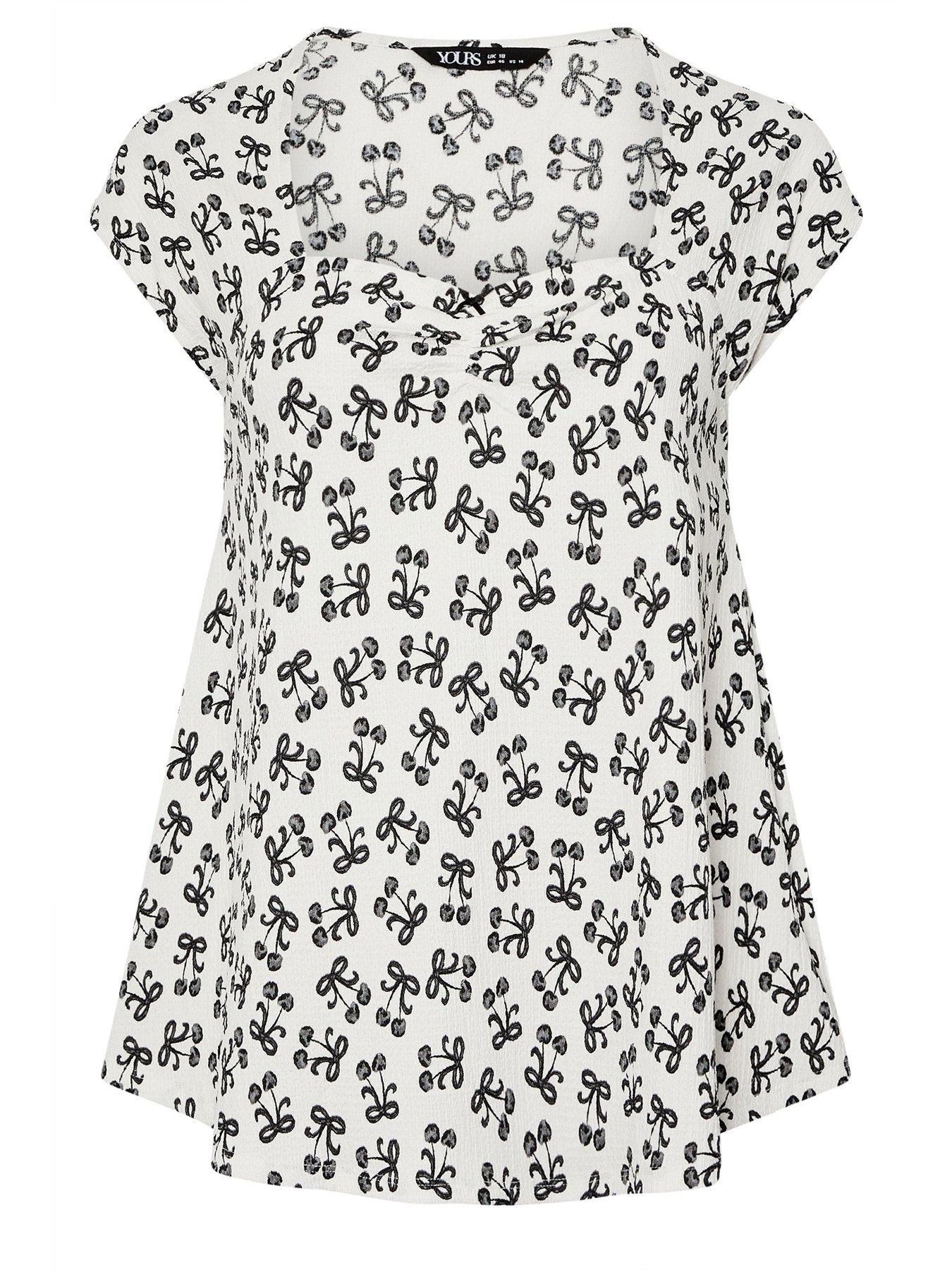 Cherry print, Textured design, A-line style, Ruched sweetheart neckline, Cap sleeves, Made from a comfortable jersey fabric, 95 polyester, 5 elastane, Length from approx: 81cm/31.8, Machine washable