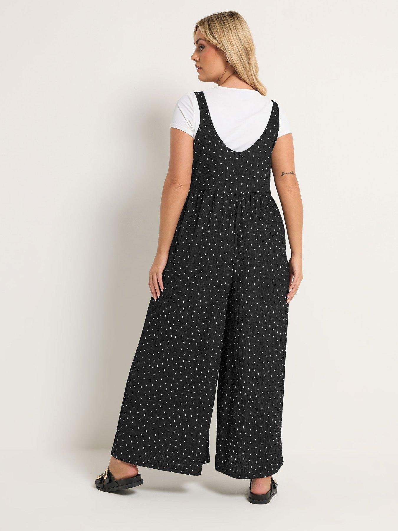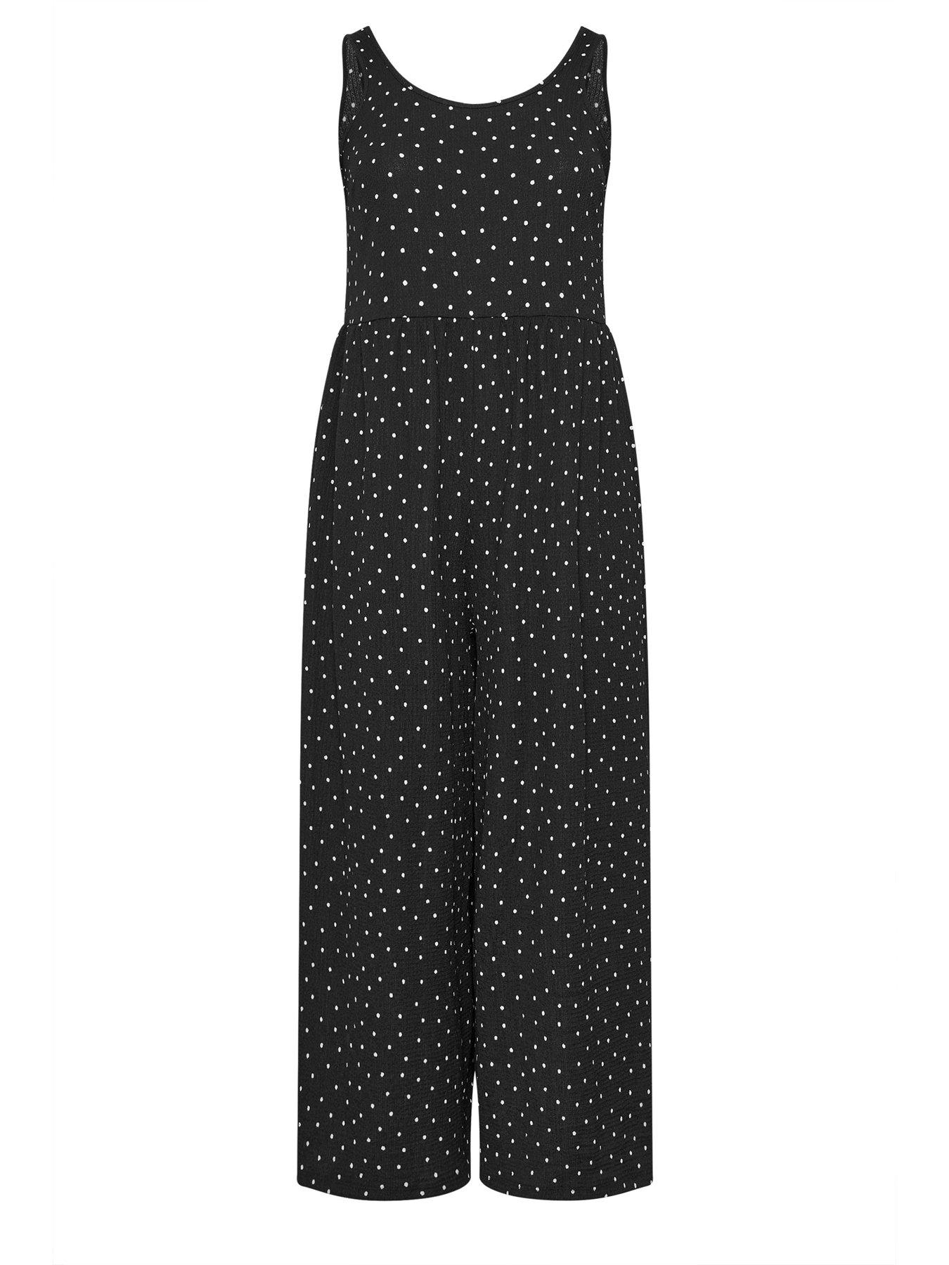 Yours Curve Textured Jumpsuit Aop Black Spot
