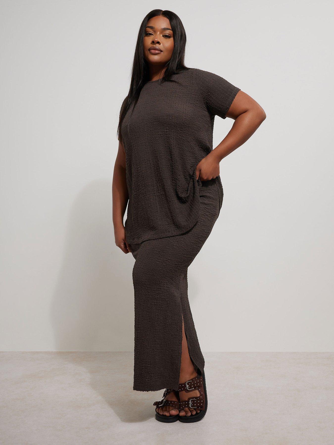 Yours Curve Textured Side Split Skirt