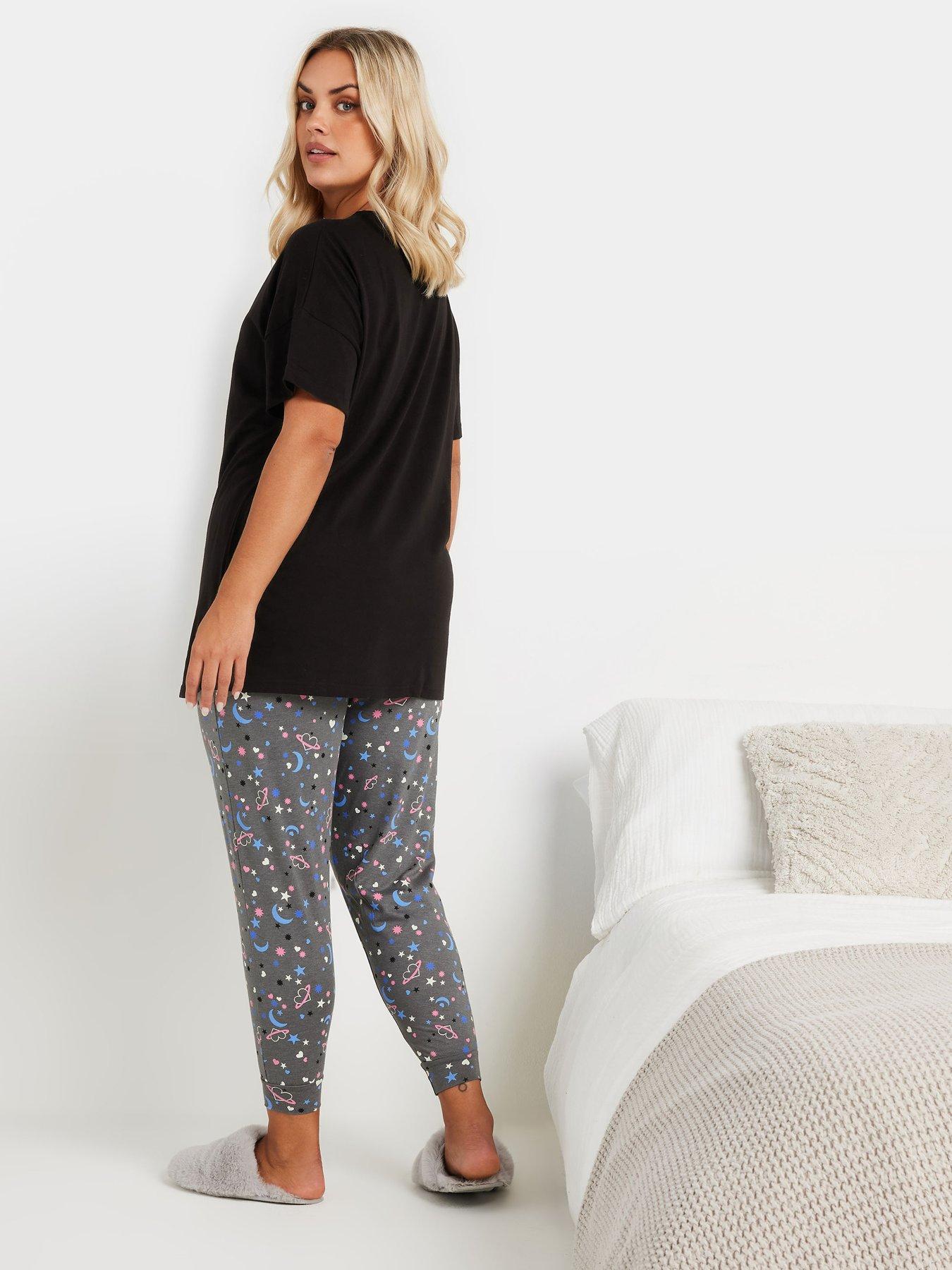 Yours Curve The Moon And Back Cuffed Pj Set2 part set, Love You To The Moon And Back slogan print, Moon, star and heart print, Cuffed bottoms, Elasticated waistband, Short sleeves, Scoop neckline, Made from a cotton rich fabric, Top: 100 cotton, Bottoms: 60 cotton, 40 polyester, Length from approx: 80cm/31.4, Inside seam measures: 29.5