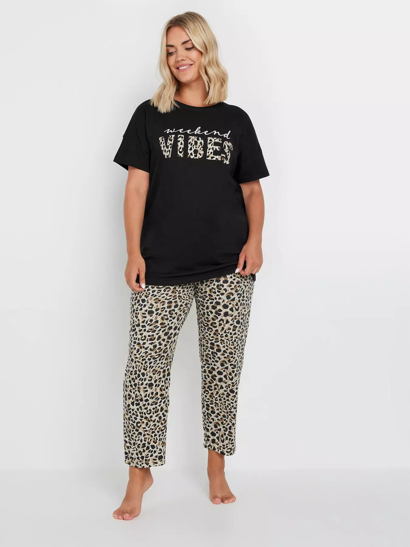 Weekend vibes slogan, Leopard print, Short sleeves, Scoop neckline, Wide leg, Elasticated waistband, Made from a comfortable jersey fabric, 100 cotton, Length from approx: 78cm/30.7, Inside seam measures approx: 28, Machine washableMaterial & Care