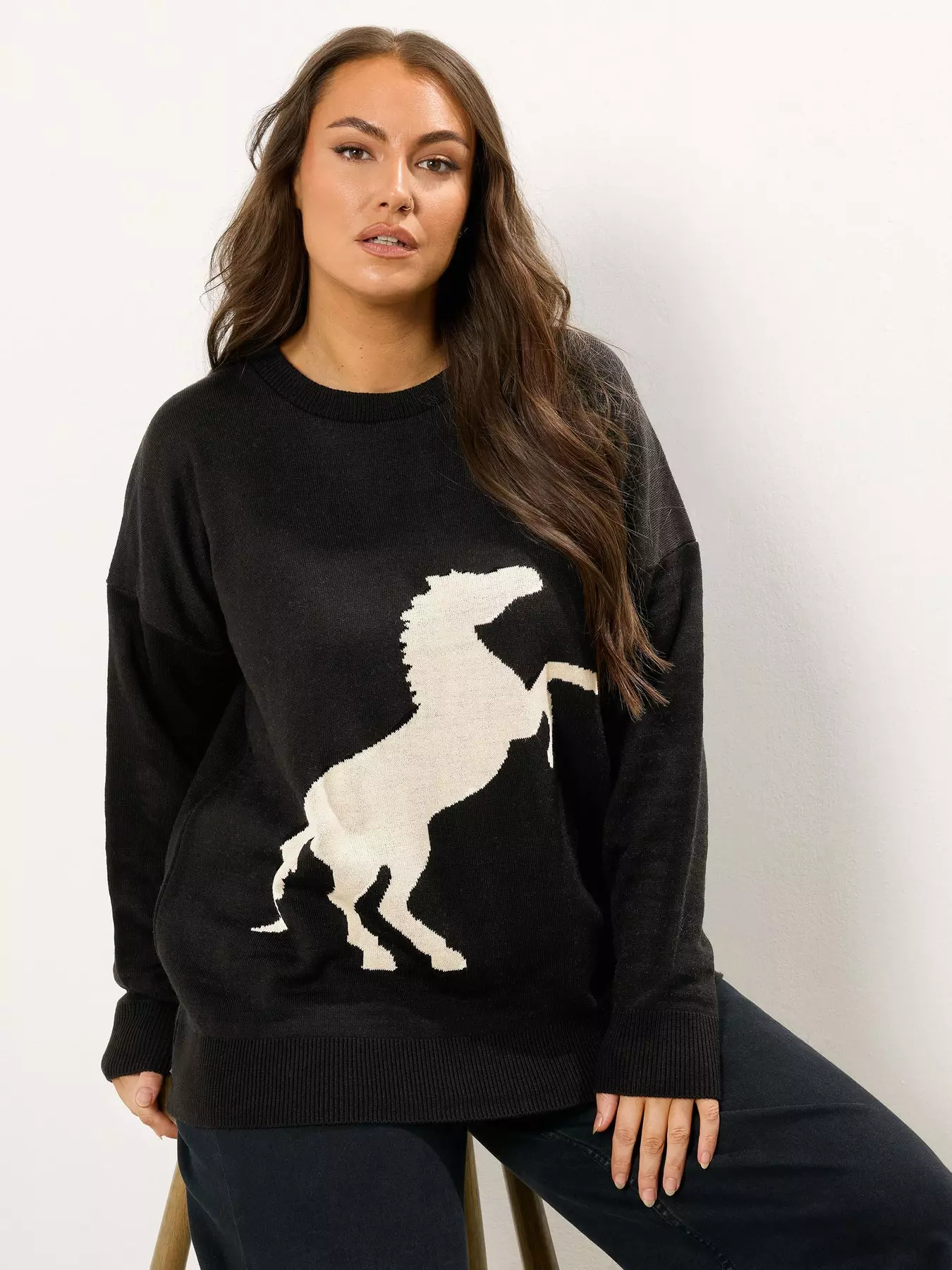 YoursCurve Western Horse Jumper - Black