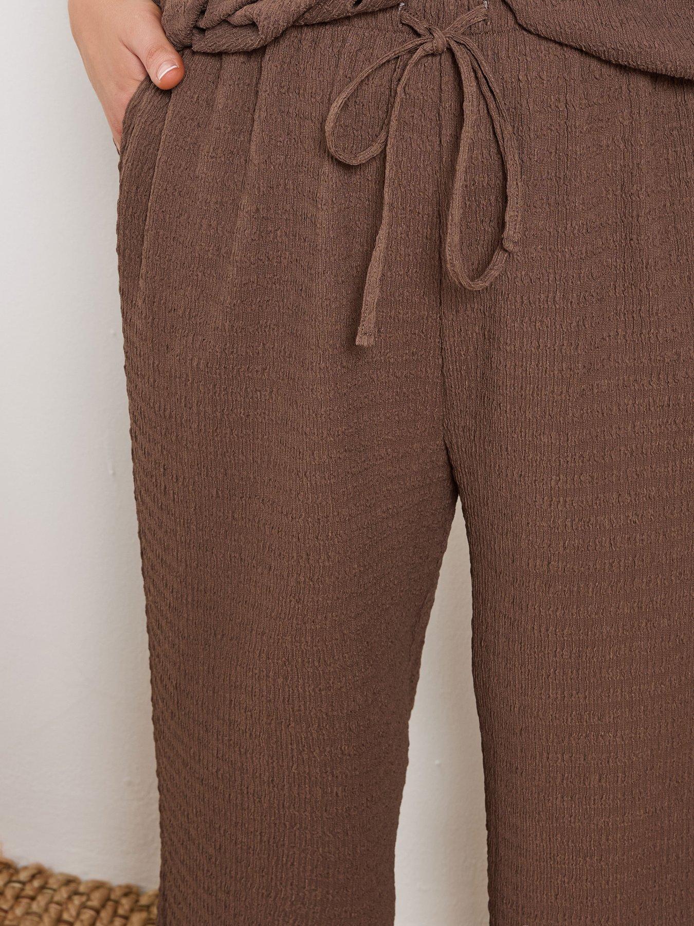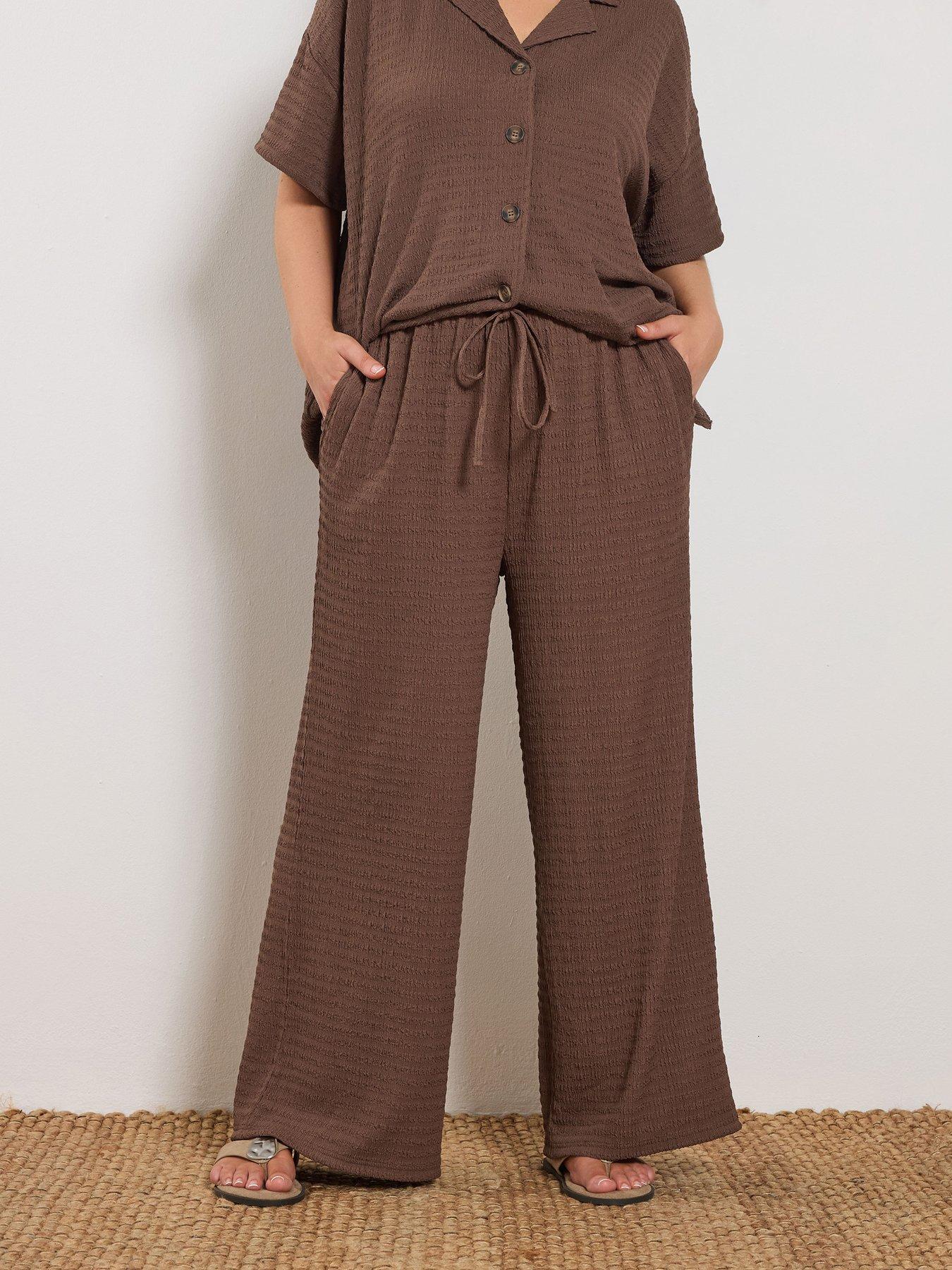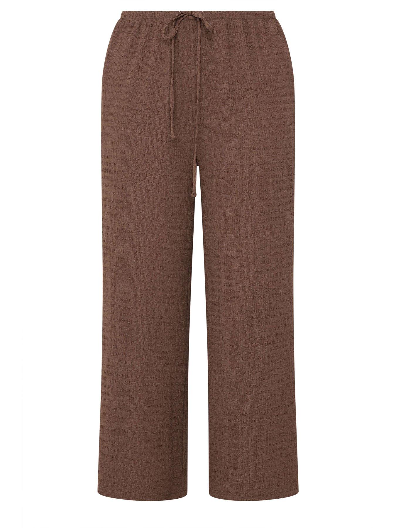 YoursCurve Wide Leg Textured Trousers - Brown