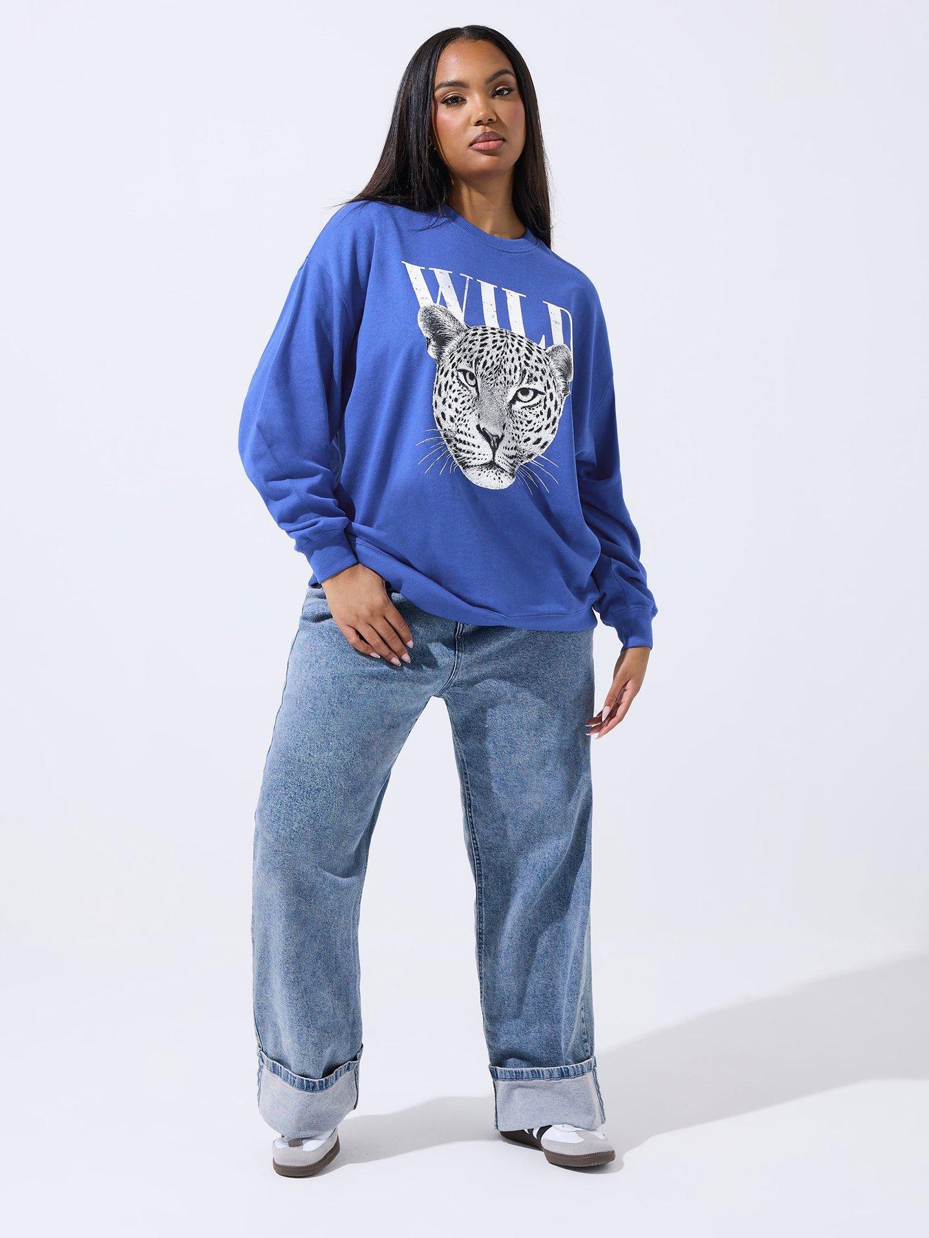 Yours Curve Wild SweatshirtWild slogan, Graphic leopard print, Long sleeves, Crew neckline, Ribbed cuffs and hem, Made from a soft jersey fabric, 60 cotton, 40 polyester, Length from approx: 74cm/29.1, Machine washable
