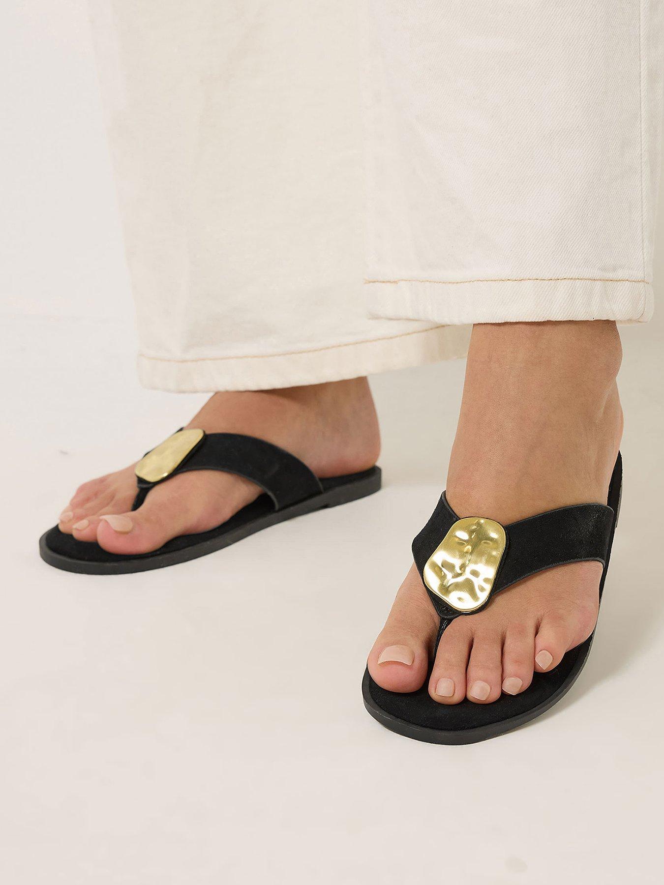 • Hammered Disk Sandals In Extra Wide Fit by Yours