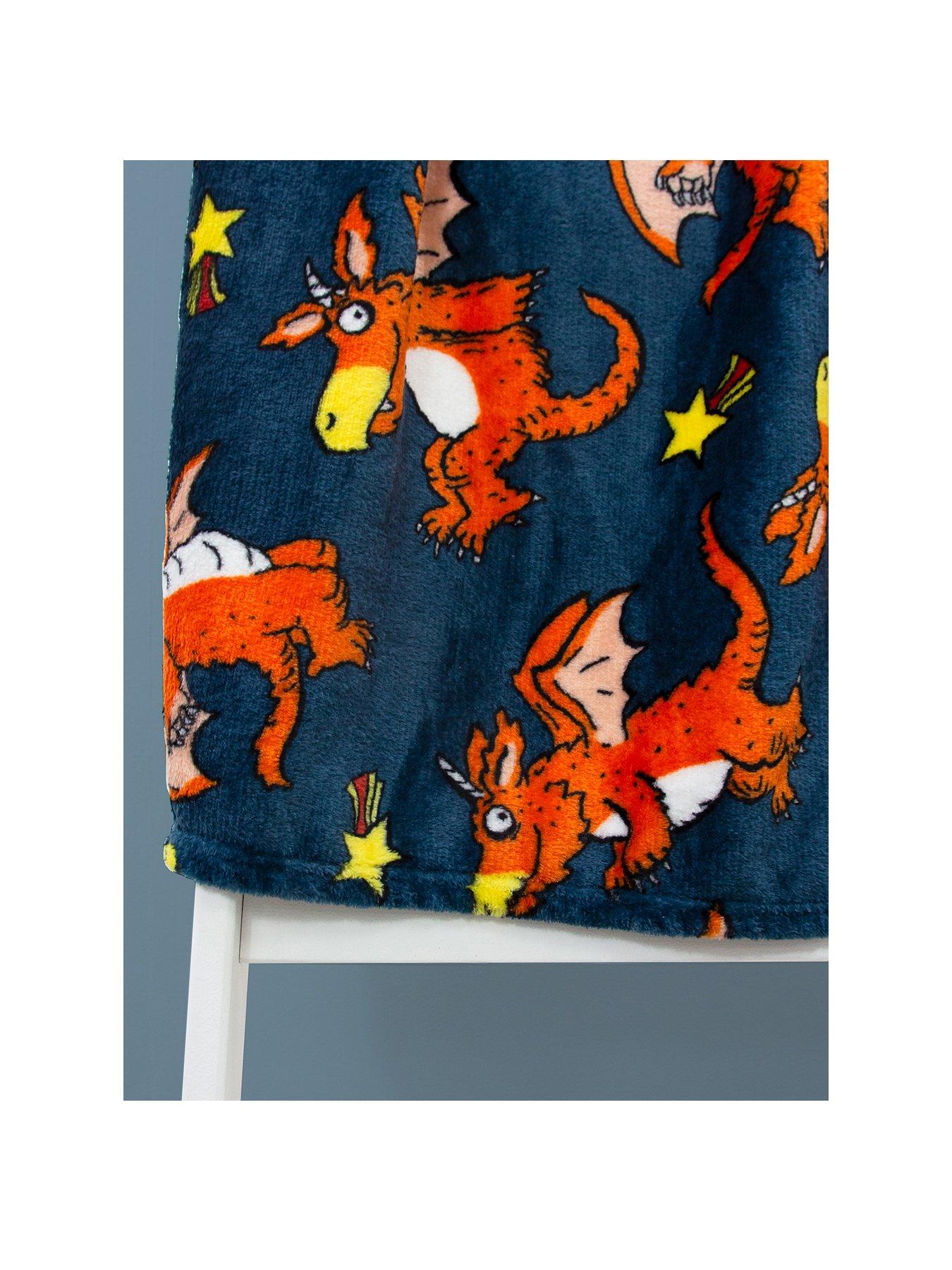 Zog Stars Rotary Fleece BlanketLoved by children of all ages, Zog the Dragon by Julia Donaldson is friendly, lovable and clumsy!This officially licensed fleece blanket has a repeating pattern of Zog the dragon in different poses, flying and with his medal, on a blue background. Great all around the house, either as an extra layer in bed, lazing on the couch watching a film, or keeping your youngster comfortable while they do their homework or play games. Perfect as a gift all year round, this Julia Donaldsons Zog fleece blanket is lightweight and folds up to a compact size, making it great for car journeys, travel, and holidays, whenever you need to wrap up warm! This large fleece blanket measures 100 x 150cm, plenty big enough to keep you covered up, or act as a throw at the end of a bed. Made from soft strokable polyester, this Zog fleece blanket is machine washable, so its easy to throw in to a wash to freshen up if there's any spills or accidents, and tumble dryer safe to quickly dry ready to be used again.