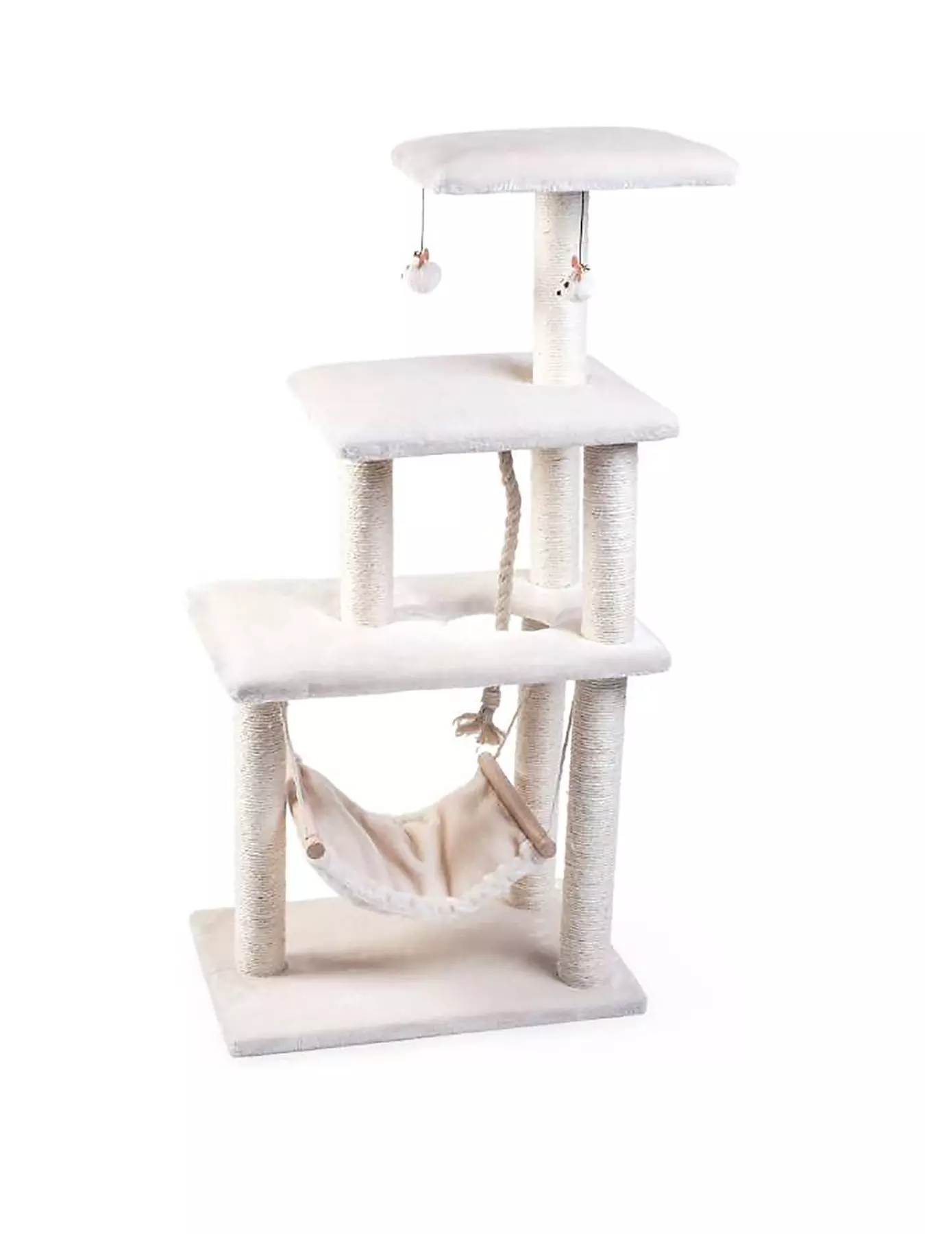 The ultimate in cat play time! A multi level tower with scratching posts, toys, ropes and a hammock when it all gets too much- Depth: 40 CM