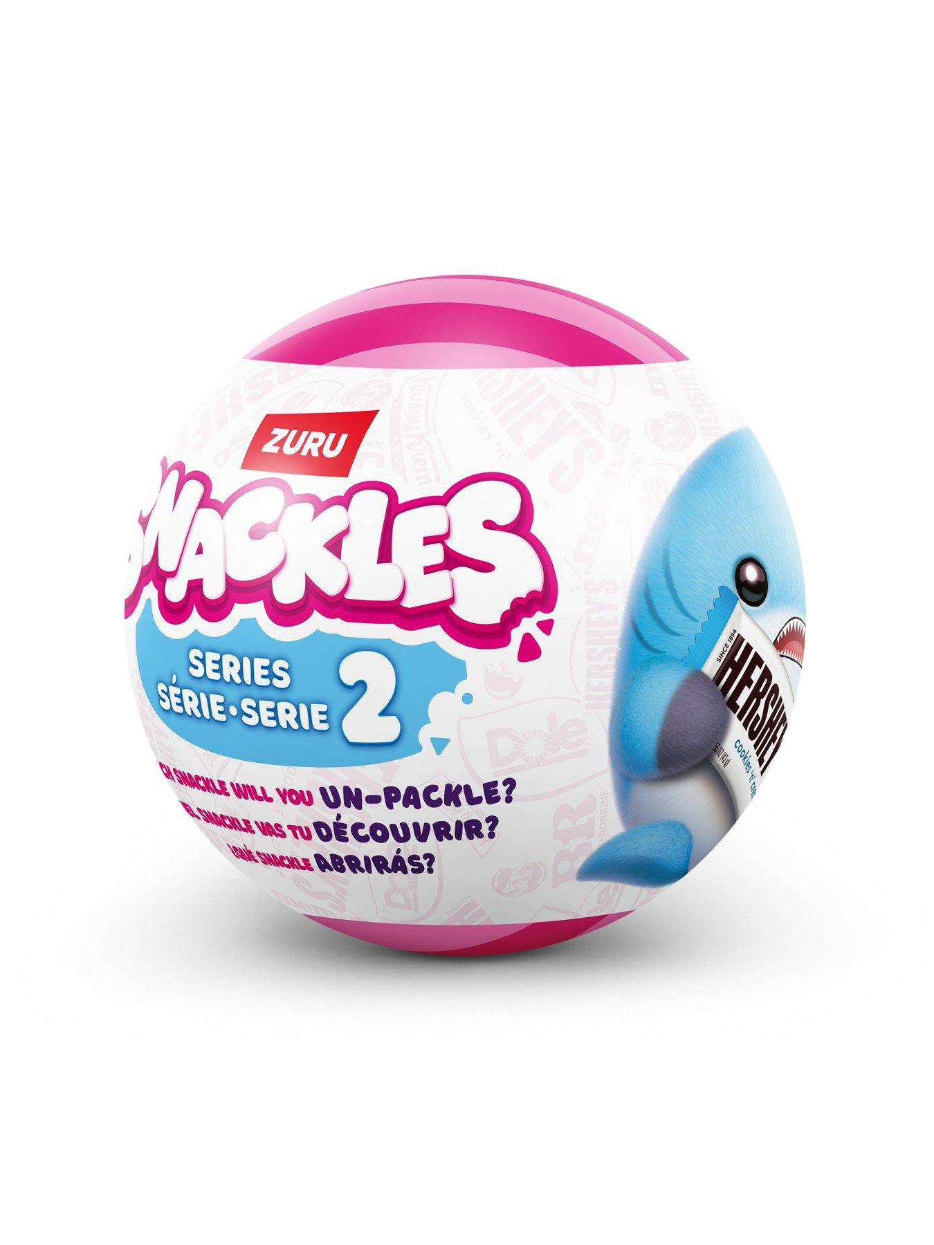 Zuru Snackles Series 2: 5-inch Soft Plush Mystery Capsule Twin Pack - Which Snackle Will You Unpackle?Snackles are the super soft ultra squeezable plush that comes paired with your favorite mini brands made squishy! Satisfy your craving for cuddles with this cuddly 5 inch plush! Each Snackle comes with a little description to tell you all about your new plushy pal! Don't go hungry, there's 10 new Snackles to collect! Will you find the Hersheys Shark or maybe the Krispy Kreme Axolotl? Hunt for your favorite tasty pairing with Snackles!